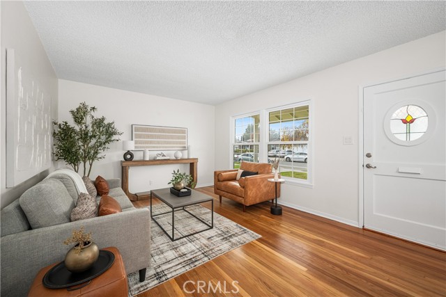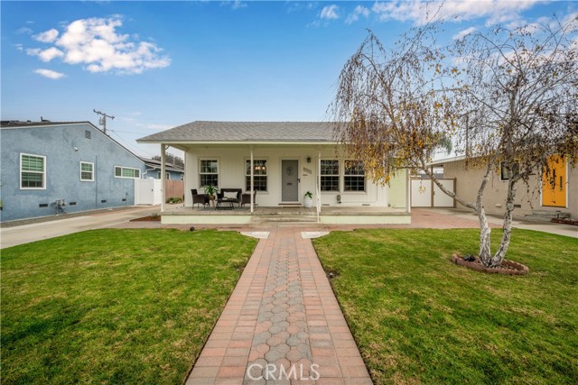 This charming South of Conant home with great curb appeal and large front porch invites you into an open living room & dining area with lots of natural light. Kitchen with lots of counter & cupboard space, breakfast eating area and a classic built-in ironing board. Master bedroom with 2 closets & 3/4 bath with tiled vanity top. Large back bedroom with nice size closet & patio access. Remodeled full bath with tiled shower, Mosaic tiled floor & farmhouse sink. Enclosed patio with a/c unit and back yard access. Private fenced back yard with gas fireplace, avocado tree & side garage access. Fresh interior paint. Refinished oak hardwood flooring. Double pane windows. Long driveway leading to a 2 car detached garage with laundry hookups.