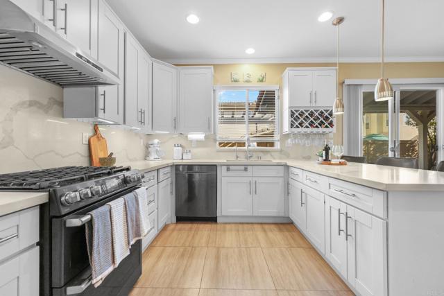 Welcome to 1263 Gold Run Drive, a well-maintained 5-bedroom, 3-bath, two-story home in a desirable Chula Vista neighborhood. Upon entry, you are greeted by an open living and dining area with high ceilings and a staircase leading to the second floor. The remodeled kitchen features quartz countertops and abundant cabinetry. The family room includes a cozy fireplace and opens to a backyard ideal for BBQs and gatherings, complete with a swing. Bathrooms have been refreshed, and the spacious primary suite offers dual sinks with a separate tub and shower. Additional upgrades include engineered wood flooring upstairs and on the stairs, newer washer and dryer, updated garage door opener and springs, repainted wood fencing, and a second-floor window awning. Two-car front-entry garage. Located across the street from Harvest Park with playground and open space, and close to schools, shopping, and rapid transit.