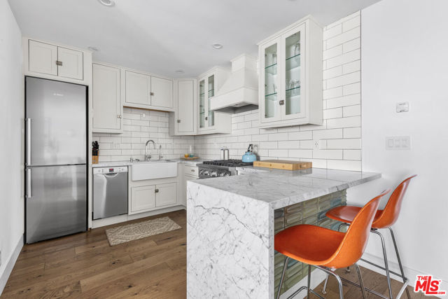 A RARE opportunity to lease a true gem in one of Hollywood's most desirable neighborhoods. This fully furnished, extensively renovated one-bedroom condo in the heart of Franklin Village, is move in ready! Located in a prime walkable location in Hollywood near restaurants, cafes, and Gelson's market. This thoughtfully updated condo features white French oak hardwood flooring, subway-tile kitchen and bath, and Carrara marble waterfall countertops with custom cabinets and lighting. The kitchen offers high-end appliances include a Viking gas stove and Bosch refrigerator/freezer, and all the small appliances you may need. The bathroom is finished with marble floors, a large walk-in shower, and Toto toilet. Additional highlights include built-in bedroom closets, wall and portable A/C, LED ceiling lighting throughout, reverse osmosis water filtration system, and vintage Turkish rugs. The condo community offers shared laundry and patio space. Please note, there is NO parking on-site. Tenants may use street parking (which has not been an issue) or rent a nearby space. Easy to show!! Tenant required to pay a non-refundable $100 HOA move-in fee.