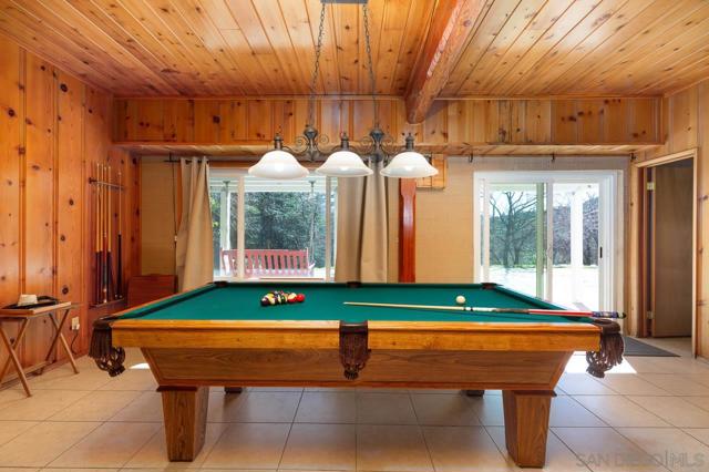 Comfortable country-style split-level home ideally situated close to the historic town site of Julian, offering both convenience and a peaceful rural atmosphere. Home boasts of beautiful wood vaulted ceilings. Two propane fireplace inserts, each within massive floor to ceiling rock hearths. Newer and efficient windows and sliding doors throughout the house improving energy efficiency and natural light. Living room features an appealing wood beam vaulted ceiling with light fans. Extra large sliding door leads directly to the backyard. Spacious family room is perfect for entertaining guests loaded with games and a pool table. Outside you will find a nice southwest-facing deck, ideal for enjoying sunsets. Lovely yard offering a variety of mature trees, including oaks, pines and manzanita. Easy access provided via paved road ensuring convenience year-round.