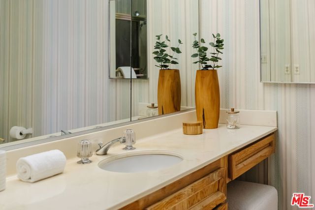 Welcome to an exceptional offering in the highly sought-after Bentley Pines community--a boutique enclave of only 14 residences ideally positioned where West LA and Westwood meet. This generously sized 2-bedroom, 2-bathroom residence features a sun-drenched balcony, in-unit laundry, and a fireplace with a dramatic floor-to-ceiling wood-paneled surround. The open-concept layout is ideal for hosting, as the dining room, living room, and balcony blend seamlessly. Enjoy treetop views of the courtyard from the kitchen, equipped with ample counter and storage space. Down a hallway with linen closets, you'll find the guest bedroom and bathroom, along with the oversized en-suite primary, complete with large sliding glass doors that open to the balcony, two walk-in closets, and a bathroom with a soaking tub and dual vanity. This home is zoned for the highly rated Westwood Charter Elementary and is just moments from UCLA, Westwood Village and the world-class dining, shopping, and nightlife at Century City Mall. HOA includes Spectrum cable and internet, trash and sewer.