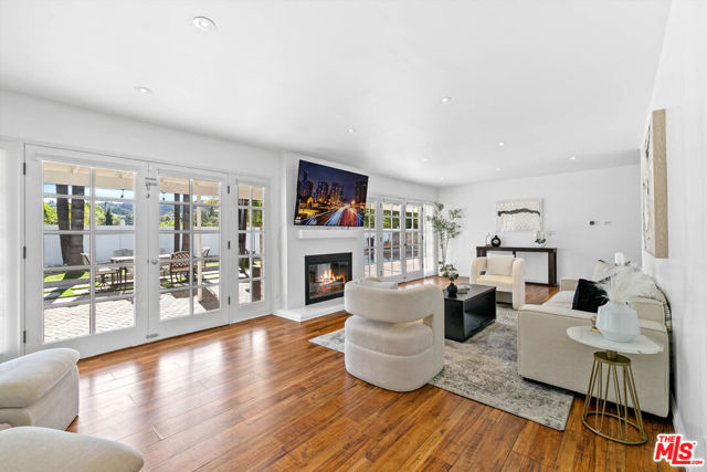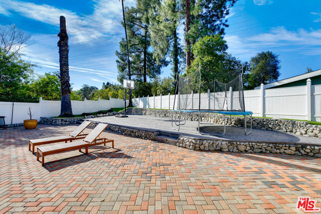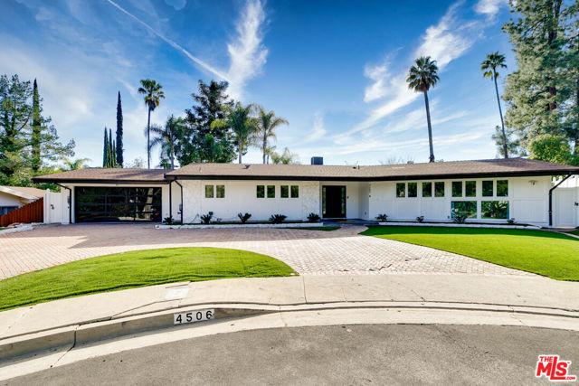 Tucked away at the end of a quiet cul-de-sac in prime Tarzana, this beautifully updated 4-bedroom, 3-bath home offers 2,091 square feet of modern comfort and style. The light-filled open floor plan features skylights, double-pane windows, solid interior doors, recessed lighting, new HVAC system, and upgraded attic insulation. The contemporary kitchen is equipped with quartz countertops, stainless steel appliances, custom cabinetry, and a farmhouse sink, opening seamlessly to the main living and dining areas with a sleek modern fireplace. The spacious primary suite includes French doors to the backyard and a spa-inspired bathroom with dual vanities and soaking tub. Additional bedrooms are generously sized, ideal for family, guests, or a home office. The private backyard is designed for entertaining and relaxation, showcasing an oversized pool with new heater, upgraded equipment, LED lighting, new electrical panel, low-maintenance turf, pavers, and new vinyl fencing with dual gated access. Property offers potential for a detached ADU (buyer to verify). Additional features include a landscaped front yard with artificial turf, modern glass garage door, and epoxy-finished garage floors. Conveniently located near Braemar Country Club, hiking trails, shopping, dining, and easy freeway access.