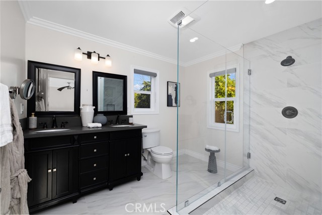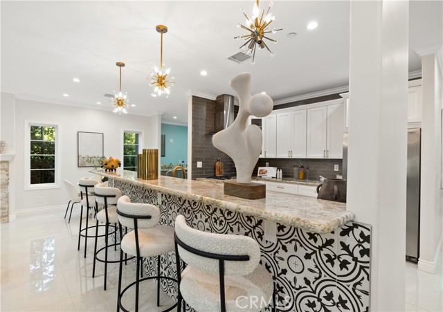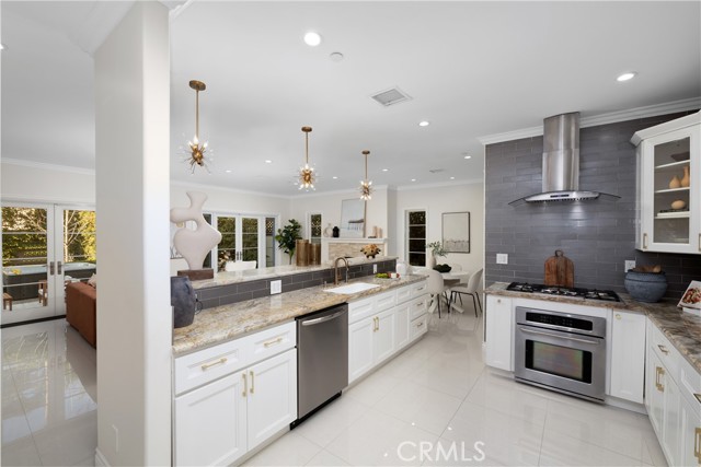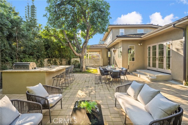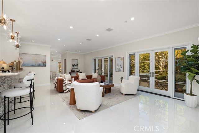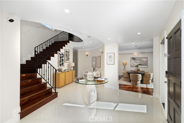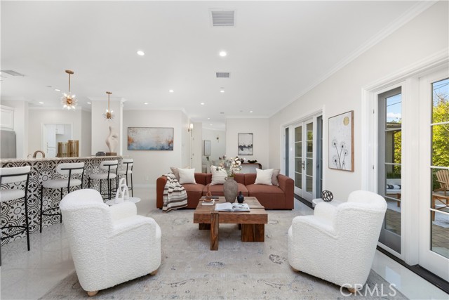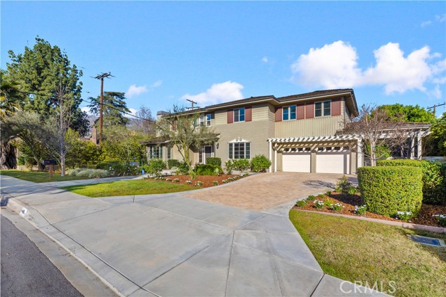Set along a picturesque, tree-lined street in Arcadia’s coveted Lower Rancho / Hugo Reid neighborhood, this beautifully rebuilt custom residence offers the perfect blend of refined elegance, modern comfort, and exceptional livability, served by the highly acclaimed Arcadia Unified School District. From the moment you arrive, the home makes a lasting impression. A grand entry foyer welcomes you with soaring ceilings, gleaming floors, and a striking chandelier that sets the tone for the sophisticated design found throughout. Thoughtfully crafted for both everyday living and effortless entertaining, the formal living and dining spaces are filled with natural light and anchored by an eye-catching fireplace, creating an inviting yet polished atmosphere. At the heart of the home is a contemporary chef’s kitchen that seamlessly connects to the family room. Outfitted with stainless steel appliances, granite countertops, a generous breakfast bar, and a butler’s pantry, this space is as functional as it is stylish, ideal for hosting gatherings or enjoying quiet mornings at home. The flexible floor plan includes a first-floor bedroom with a full bath, perfect for guests, extended family, or a private home office. Upstairs, the luxurious primary suite serves as a true retreat, featuring a spacious walk-in closet and a spa-like ensuite with dual vanities. Two additional junior suites, each with their own bathrooms and walk-in closets, provide comfort and privacy for family or guests. A conveniently located upstairs laundry room adds everyday ease. French doors open to a beautifully landscaped backyard designed for low maintenance and high enjoyment. Whether entertaining or unwinding, the outdoor space delivers with a tiled patio, lush greenery, and a fully equipped outdoor kitchen complete with BBQ and bar seating, perfect for al fresco dining and relaxing under the Arcadia skies. Additional highlights include central air conditioning, an oversized two-car garage, and a generous lot that enhances the home’s sense of space and privacy. Ideally located just minutes from Santa Anita Park, Westfield Santa Anita, the Los Angeles County Arboretum, Hugo Reid Park, and major shopping and dining destinations, with easy access to the 210 Freeway. Impeccably maintained and truly turnkey, this exceptional home offers a rare opportunity to enjoy luxury living in one of Arcadia’s most sought-after neighborhoods.