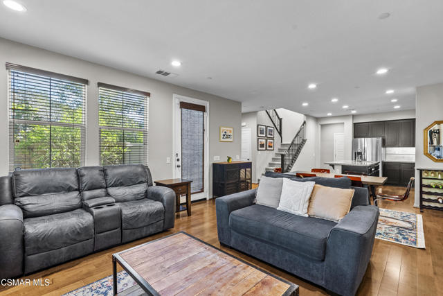 Exceptionally maintained and extensively upgraded 3-bedroom, 2.5-bath corner-unit condo ideally located next to Happy Face Hill. This home offers a perfect blend of comfort, functionality, and thoughtful design. The interior features hardwood flooring, upgraded carpet, and an elegant wrought-iron banister that adds architectural interest.The living area is warm and inviting with an electric fireplace, while abundant natural light enhances the open layout. The kitchen has been refreshed with a new dishwasher, new kitchen faucet, and newer refrigerator, and is designed for both everyday living and entertaining. A washer and dryer are included for added convenience.All bathrooms have been tastefully updated, including marble tile in the primary bathroom and a new pedestal sink in the half bath. The home also includes custom closets, blinds and Roman shades throughout, and upgraded lighting with recessed can lights, dimmers, and wiring for ceiling fans in all bedrooms.Additional features include custom cabinetry in the garage, Nest cameras, Ring doorbell, fire sprinklers, and a spacious 2-car garage. The private outdoor space is fully landscaped with custom pavers and a serene water fountain, creating a peaceful setting for relaxing or entertaining.As a corner unit, the home offers added privacy and enhanced light. , this move-in-ready property offers pride of ownership and quality upgrades throughout.