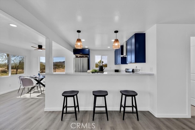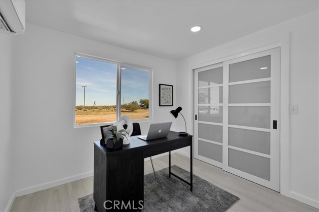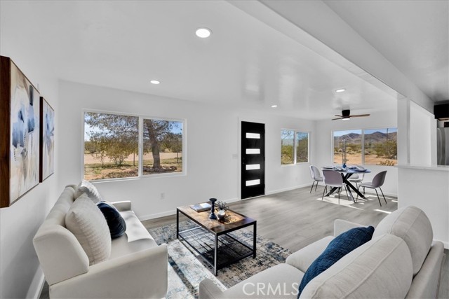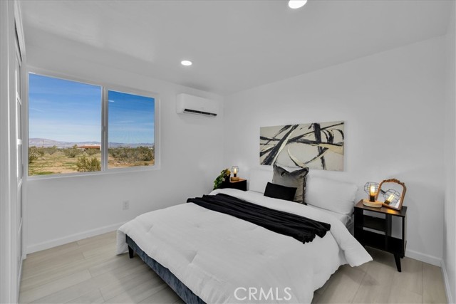 New construction look and feel! Nearly everything has been redone in this stunning 3 bed 2 bath desert oasis. This soon to be fully fenced desert gem offers sprawling 360 degree views with incredible sunrises and mesmerizing sunsets. You'll feel like kings and queens with new drywall, windows, floors, recessed lighting, updated electric and plumbing, brand new septic, all new Samsung appliances, quartz countertops, luxury Italian tiles in both bathrooms, modern finishes, new mini splits in every bedroom, French doors and more! And check out the garage! Brand new Samsung washer and dryer await with new epoxy floors, drywall, recessed lighting, a new vanity/sink/cabinet combo, fridge, and even a mini split! Finalize the conversion into an ADU or use the space for a huge entertainment area, music/yoga studio, weekend guest sleeping space, man cave/she shed, or just have one really nice garage! Priced to sell!!! No other 3/2 on 2.5 acres with detached garage and new septic tank compares at this price! Come and get it today before this gorgeous home is someone else's.