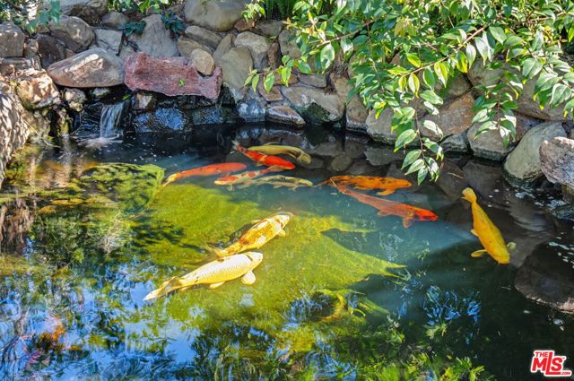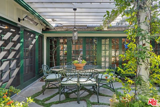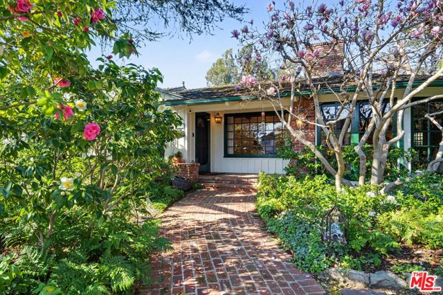 Evoking the charm of Montecito's San Ysidro Ranch, this one-story traditional residence is set behind lush, mature landscaping in prestigious Brentwood Park. A covered front porch opens to a welcoming entry with a powder room and a spacious living room centered around a hand-carved fireplace, with large windows framing serene garden views. The formal dining room features a paneled butler's pantry that connects seamlessly to the spacious kitchen, which offers marble countertops, a butcher-block center island, double ovens, and a built-in brick barbecue overlooking the pool and grounds. The adjacent family room is an incredibly inviting place to relax, featuring high-beam ceilings, a charming fireplace, and built-in bookshelves. The resort-style pool was designed by renowned landscape architect Garrett Carlson and featured in a published work. The gardens are truly an exceptional sanctuary, with a koi pond, children's playhouse, and lush landscaping. A sunroom with soaring beam ceilings, a fireplace, and walls of glass provides seamless indoor-outdoor living. The primary suite overlooks the gardens and includes a spa-inspired bath with a steam shower. Three additional bedrooms offer flexible living, with one having direct outdoor access. Additional features include a two-car garage with direct access and a dedicated exercise space. Located on a private corner lot, which adds approximately 5,479 sqft of additional outdoor gated space. This rare single-level estate-style home offers warmth, privacy, and tranquility, moments from Brentwood's finest amenities.