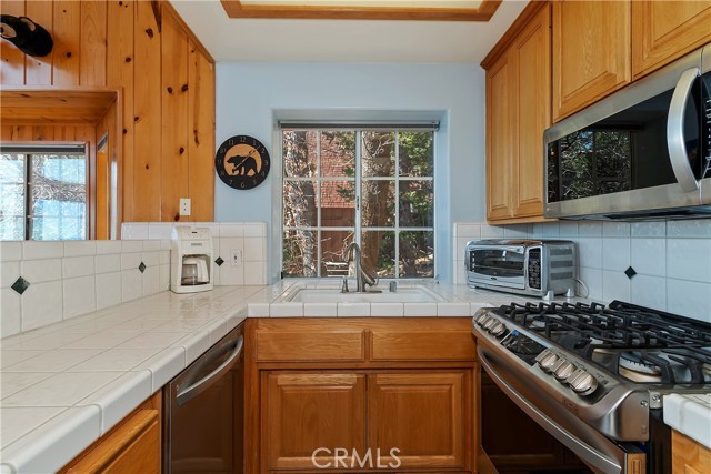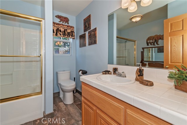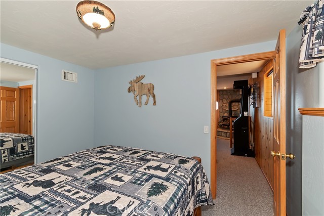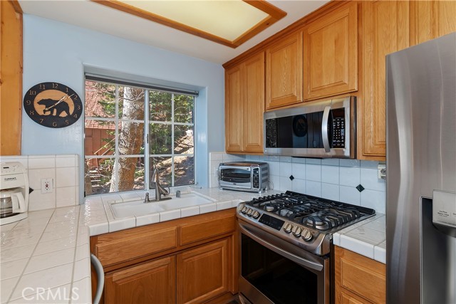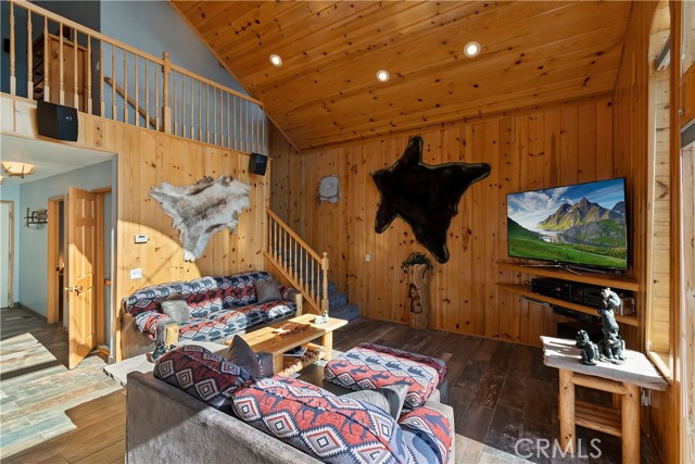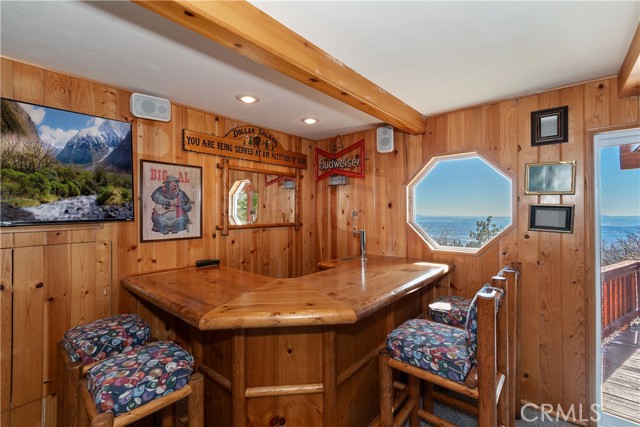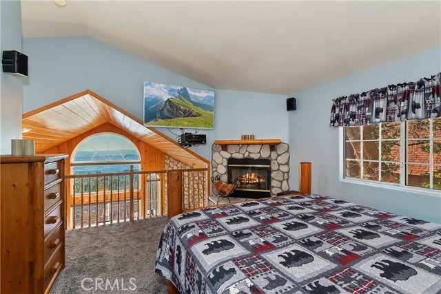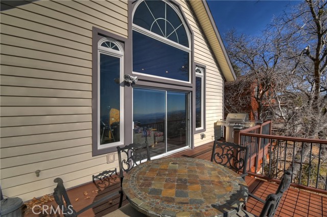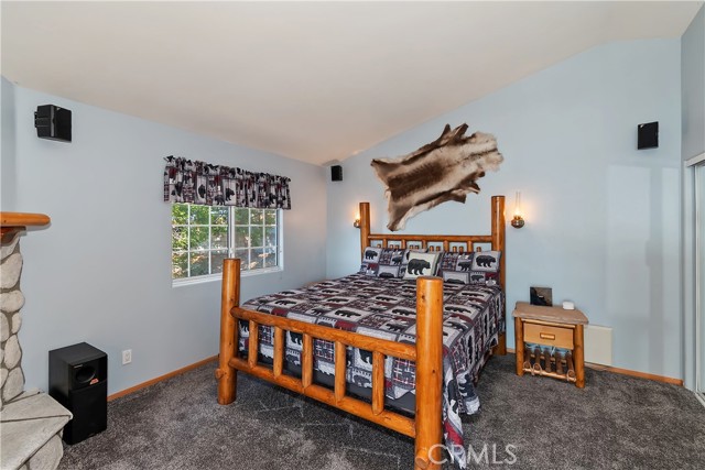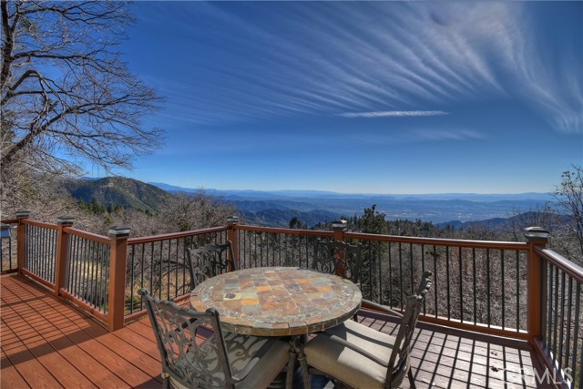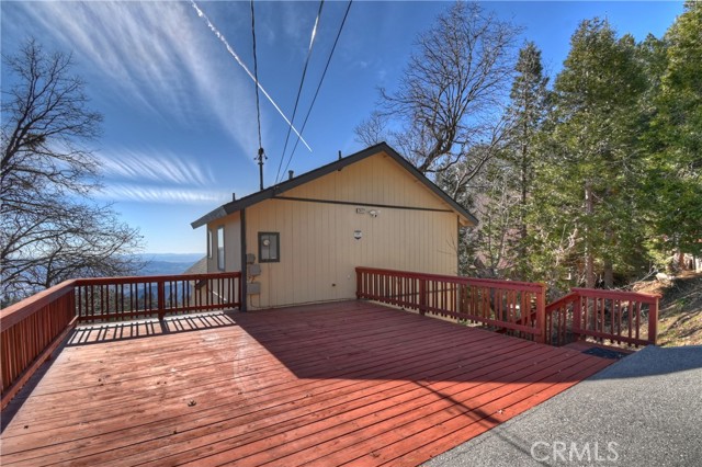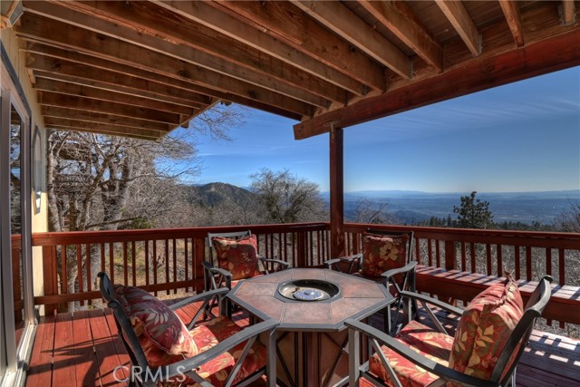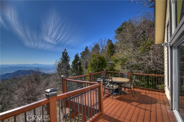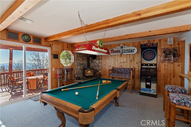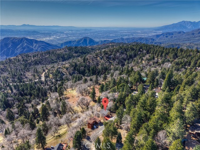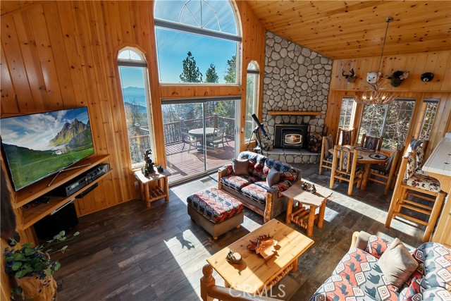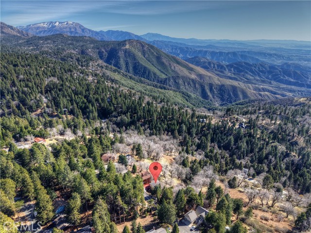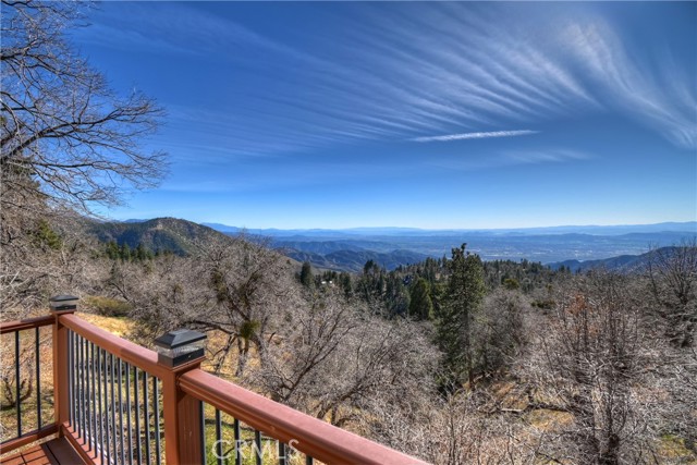 Welcome to your private mountain retreat! This stunning three-level home offers breathtaking panoramic views of sparkling city lights, majestic mountains, and lush forest canopy from multiple vantage points throughout the property. The main level welcomes you with an inviting living room anchored by a striking river rock fireplace, creating the perfect ambiance for relaxation. The well-appointed kitchen features a convenient breakfast bar and dining area, ideal for both casual meals and entertaining guests. Step through to the upper back deck and prepare to be captivated by the sweeping vistas that stretch before you. This level also includes a comfortable bedroom and full bathroom, offering convenient single-level living if desired. Ascend to the top level where the luxurious primary suite awaits. This serene retreat features its own cozy rock fireplace for intimate evenings and spectacular views to wake up to each morning. The spa-like primary bathroom is designed for indulgence, complete with dual sinks for busy mornings, a relaxing jetted tub for unwinding after a long day, and a separate walk-in shower. The lower level transforms into an entertainer's dream with a dedicated game room that includes a pool table and electronic dart board, perfect for hosting friends and family. The private bar adds a sophisticated touch for gatherings, while the laundry closet provides practical convenience. Another bedroom and full bathroom on this level ensure comfortable accommodations for guests, and access to the lower back deck provides yet another spectacular setting to enjoy those unforgettable views. With easy, level parking and thoughtful design throughout, this exceptional property offers the perfect blend of mountain living and modern comfort. Every level of this home has been crafted to maximize the stunning natural surroundings while providing the amenities and space for comfortable everyday living and memorable entertaining. This is a great, short drive location to Running Springs town, Hwy 330 for commuters, Snow Valley Ski Resort, Green Valley Lake, Sky Park At Santa's Village, etc.!