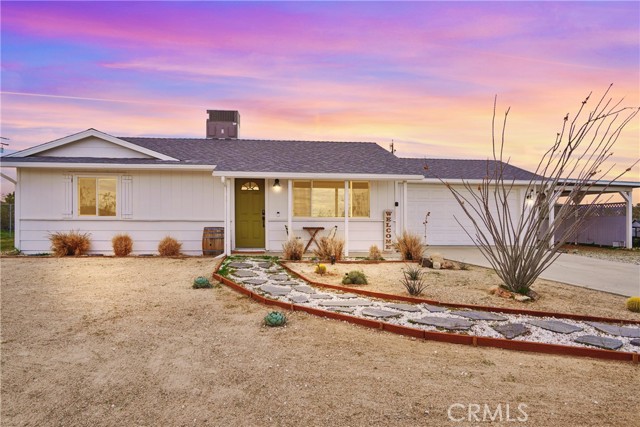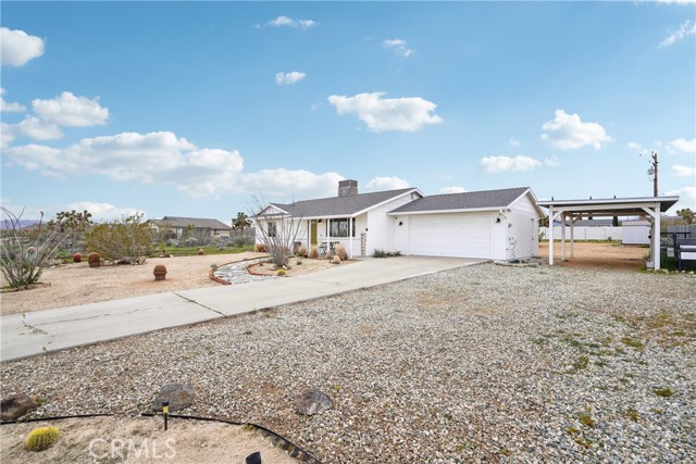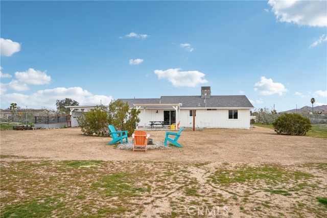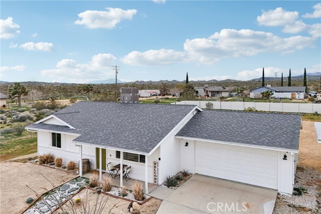 Charming 2-Bedroom Home on Expansive 20,000 Sq. Ft. Lot in Yucca Mesa! Discover this beautifully updated 2-bedroom, 1-bath home situated on a spacious nearly half-acre lot in the sought-after Yucca Mesa area! Boasting 1,008 sq. ft. of living space, this fully fenced property offers both privacy and charm. Step inside to a bright and open living area featuring stylish wood-look tile flooring throughout. The thoughtfully designed open-concept kitchen showcases quartz countertops, sleek cabinetry, a stove, microwave, and ample storage. Both bedrooms are generously sized with large closets, while a sliding glass door leads to a vast backyard, perfect for relaxing or entertaining. The outdoor space is an oasis for enjoyment, complete with a fire pit, horseshoe pit, seating areas, a chicken coop, and a storage shed. The property also includes an attached 2-car garage with direct access plus a carport for additional parking. Recent upgrades include a new septic tank, roof, water heater, and HVAC system (installed in 2020). Whether you're looking for a primary residence, investment property, or vacation home, this gem is a must-see!