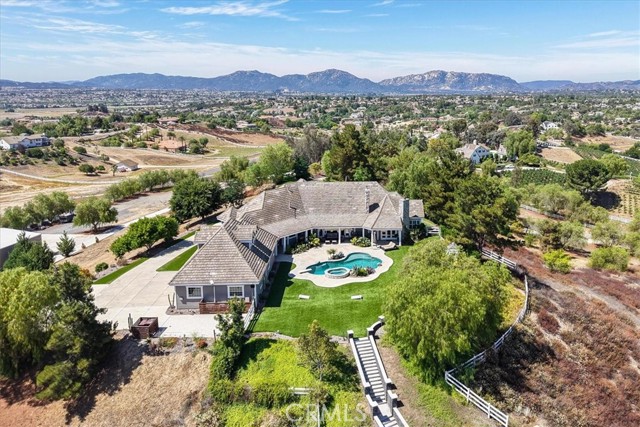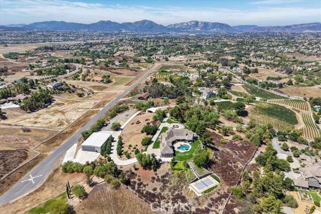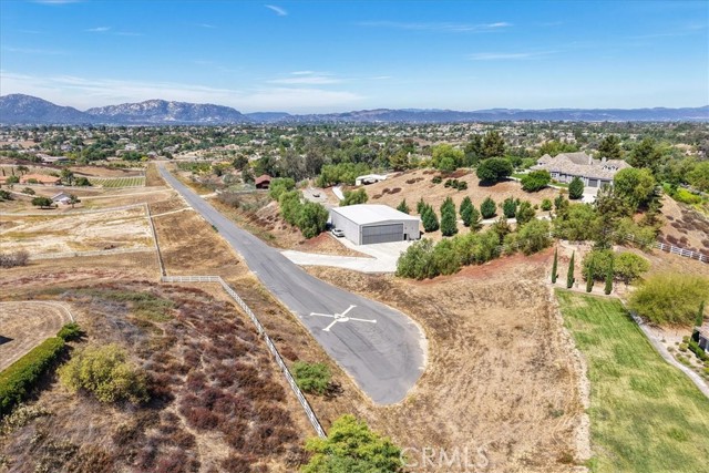 Fly-in convenience meets wine-country luxury with private airstrip* access and a 4,800 sq ft hangar. Perched on 7.36 acres of Temecula wine country, this single-story home offers convenience alongside luxurious living. Step inside through a gated entry to a grand foyer with soaring ceilings that opens to a great room featuring a floor-to-ceiling stone fireplace and vaulted wood-beam ceilings. The chef’s kitchen boasts granite countertops, a center island, separate breakfast bar and top-of-the-line stainless steel appliances. Panoramic orchard and mountain views frame the formal dining area. Retreat to the master suite with vaulted ceilings, a private fireplace and dual French doors leading to the landscaped backyard oasis. Enjoy a sparkling pool and spa, dual-sink vanity, jetted jacuzzi tub, large walk-in shower and his-and-hers closets. Three additional bedrooms include two en-suite baths and one versatile room currently used as a home office with its own private entrance. Beyond the home, aviation enthusiasts will love the covered storage adjacent to the hangar and the large, flat event area perfect for RVs, car shows or gatherings. A full-size lighted pickleball court and ample covered storage complete the outdoor amenities. With dramatic “360-degree” views, privacy and unparalleled access to a private runway, this rare Temecula property may never be matched. Schedule your private showing today and experience a lifestyle that combines luxury, recreation and aviation. You will NOT see a listing like this again… *Airstrip/Runway is private to the Homeowner's Association. *Seller will also consider a sale. MLS# SW26015121