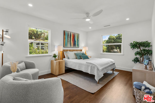 A rare cul-de-sac offering in View Park-Windsor Hills offers a unique opportunity to enjoy generous outdoor space, modern upgrades, and a flexible layout in one of Los Angeles' most established neighborhoods. This thoughtfully upgraded four bedroom, three bath property includes a 1/1 guest house, not included in the total square footage, adding valuable flexibility for guests, work, or creative use. The 1,598 square foot main house showcases refinished hardwood floors and a stunning kitchen outfitted with professional appliances. Improvements include a new roof, new central heat and air, dual pane windows and two tankless water heaters. The grounds unfold into multiple outdoor spaces, including terraces for outdoor entertaining, lush garden areas ideal for the avid gardener, and a dedicated sports court equipped for pickle ball or basketball. Located among wonderful neighbors with a rare balance of privacy and every day convenience, you are close to the creative hubs of Culver City and Playa Vista, the sports and entertainment centers of SOFI, YouTube Theater, Intuit Dome, and The Kia Forum, as well as a diverse array of fantastic restaurants, shopping opportunities and easy freeway access.
