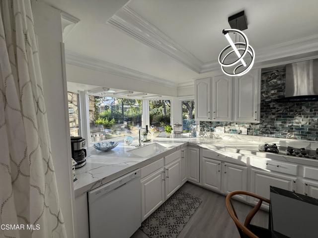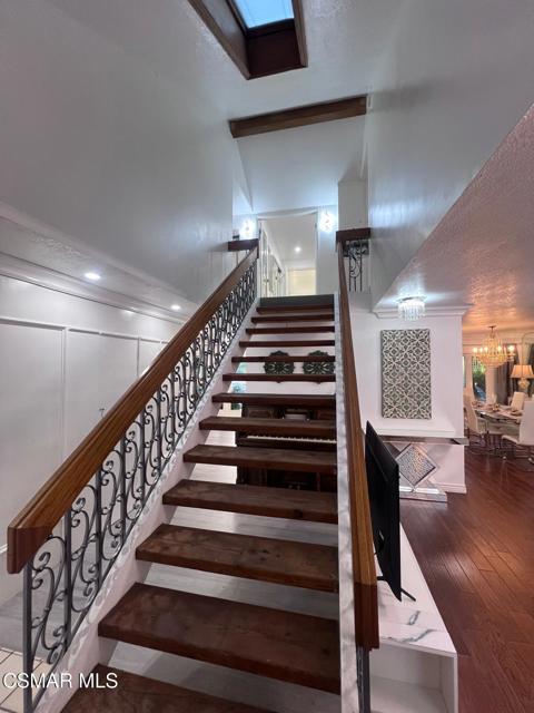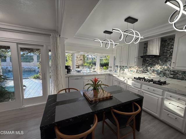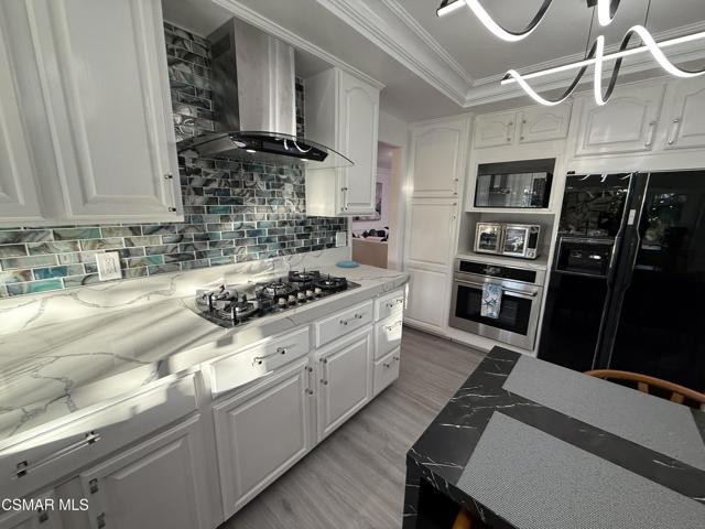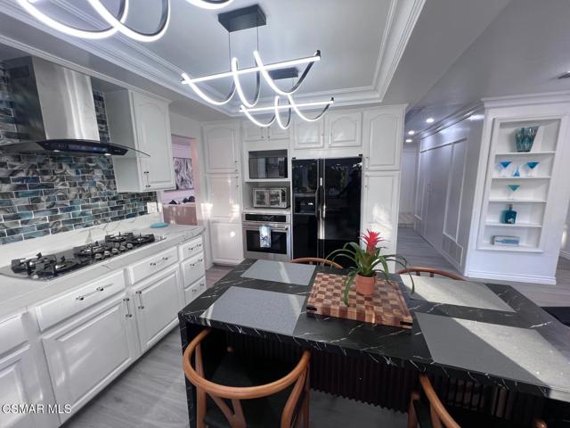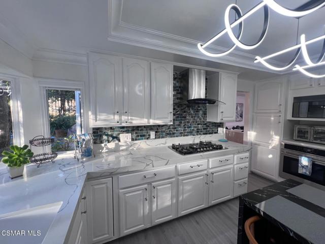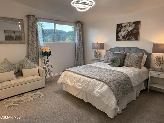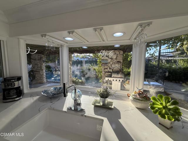 Fully Furnished & Fully Equipped & Ready Move-In! Spectacular Home with Santa Monica Mountain Views! Chateau Balcony Spanning the back of the home overlooking Gorgeous Hiking Trails. Feel as if YOU have been Transported to Another World of Luxury in Your OWN Private Mediterranean Villa! 5 Spacious Bedrooms, Remolded, Mountain View Retreat! Very Unique & Breathtaking Pool & Spa. Truly a mesmerizing Backyard with Privacy Galore as there is complete open space with Hiking Trails directly behind the home. Enjoy the surrounding of a Plethora of Fruit Trees including Orange, Apple, Pears, 2 Avocados, Persimmons & Lemons and the Views of the Trees and climbing Plants out each window. Enter through the Double Doors to find a Flowing Floorplan from the Inviting Entryway with a Wrought Iron Staircase to the Spacious Living Room, Formal Dining Room, Gourmet Kitchen & Family Room with Cozy Marble Fireplace. Eat-In Kitchen & Reclining Sofas Make for a comfortable conversation while enjoying your Culinary Experiences together. The Spacious Kitchen has a huge bay window overlooking the sink out to nature galore. The sliding glass doors of the family room overlook the sparkling pool. White & Black Kitchen with newer appliances, wood moldings, built-in shelving, Voice-Activated range hood is at your command while you enjoy the peaceful surroundings. The formal dining room has a leaded-glass bay window & a mirrored wall. The living room lighting includes transparent ceiling fans for your comfort year-round. Luxurious Living Abounds in this exquisitely Remolded Home in the Heart of Newbury Park nearby to local Restaurants, Starbucks, Banking, Albertsons, CVS & more convenient essentials. The Grand Master Bedroom has it's own private Balcony overlooking peaceful nature & its own private entrance, a Wrought-Iron Spiral Staircase! It includes Mountain Views, 2 bay windows, an electronic fireplace, jazzy furniture and lounge sofa. This huge main bedroom also has an adjoining office, den or sitting area. 3 other spacious bedrooms are upstairs. one room offers 2 double beds, large mirrored closet, bay window, and work desk. another has a sleeper sofa as well as a double bed, dresser, & plenty of closet space & an attached bathroom with spacious shower. another overlooks the luscious Fruit Trees. There is a bedroom and bathroom on the main floor downstairs with built-in library shelving & built-in desk. The Park-like backyard is Your own playground on the edge of the Santa Monica Mountains nature-scape with Your PurelyPrivate Oasis Pool & Spa, Patio areas, shuffleboard offering Unlimited Entertainment. Pizza BBQ Oven & outdoor Storage and countertop for preparing meals outdoors. Choices Abound when it comes to Outdoor Entertaining spaces with Sweeping Patios, BBQ Grill & Pizza BBQ oven. conveniently located just around the corner of the kitchen all in Malibu's Newbury Park. Dont miss the Oversized 3-Car Garge with 2 Dedicated 50 Amp Charging Stations & 1 additional portable charging station. Inlaid brick driveway adorn the front of the house, brand new garge doors, new digital motors, just a hint of the Magic that Awaits inside this gorgeous home. If you are dreaming of a laid-back Open-Mountain front lifestyle, look no farther! This Renovated residence set off the Abounds of Nature wil check off every box of your must-have features. Character filled details are on show throughout & provide the perfect backdrop to this one-of-a-kind Chateau. Recreation is Plentiful with Hiking Trails originating just behind through your private gate. Imagine relaxing after a day of hiking or swimming, lounging at the pool with serene landscaping. With everything you could ever Imagine needing at your fingertips, there's no need to sacrifice convenience when relishing this luxurious lifestyle.
