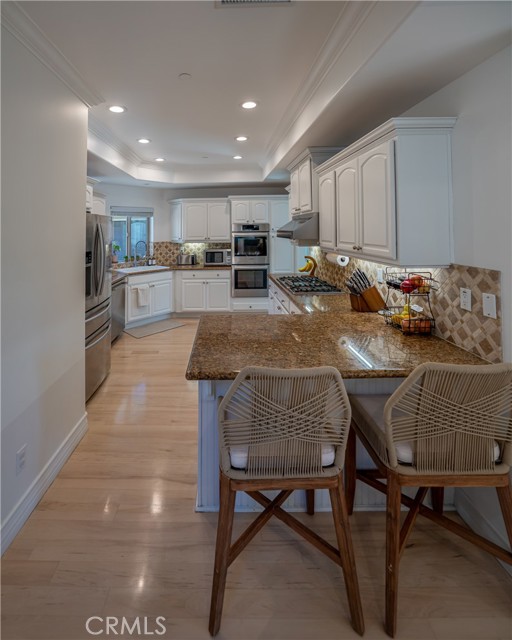 Step into sunlit Pottery Barn perfect elegance in this fully remodeled 4-bedroom, 2.5-bath front unit, one of just two on the lot, offering privacy, style, and modern comfort. The gated front yard welcomes you into open yet defined living spaces, including a formal dining room and a bright living room that flows effortlessly to the front yard — perfect for entertaining or enjoying a quiet morning coffee. The gourmet kitchen is equipped with Bosch Benchmark stainless steel appliances, expansive granite countertops, and abundant cabinetry, making it both functional and inspiring. Hardwood floors run throughout the main level, while upstairs bedrooms are carpeted for comfort. Vaulted ceilings crown all bedrooms, and the primary suite is a true retreat with a fireplace, spa-like jetted tub, and walk-in closet. A convenient upstairs laundry room and central A/C add ease to daily life. Additional features include a powder room downstairs, attached garage with epoxy floors, storage, and a Tesla EV charger. There is plenty of natural light throughout. Ideally located near Manhattan Beach Blvd & Redondo Ave, with easy access to the 405, this home is just 12–13 minutes from Manhattan Beach Pier and shoreline. Perfectly balanced between city convenience and peaceful privacy, this home offers a rare combination of light, style, and lifestyle in one unforgettable package.