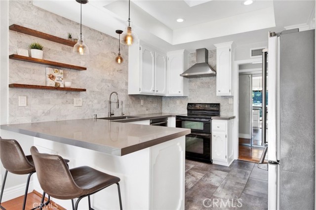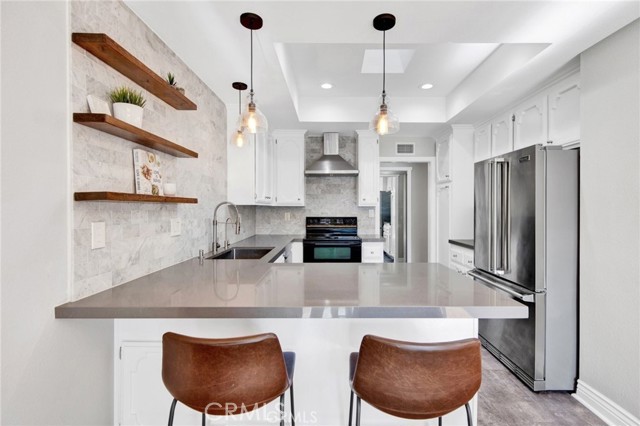 Beautifully remodeled South-of-the-Boulevard condo in the heart of Sherman Oaks. This rare top-floor, south-facing unit features soaring ceilings, abundant natural light, and stunning mountain views.The open floor plan includes a spacious living room, built-in bar with wine fridge, and a modern kitchen with quartz countertops, marble backsplash, Viking stainless steel refrigerator, and upgraded tile flooring. A large balcony offers plenty of space for seating and relaxation.The updated bathroom and primary suite feature new vanities, custom cabinetry, and excellent storage. Additional highlights include recessed lighting, smart Lutron lighting system, smart lock with camera, new central A/C, and in-unit washer and dryer. Building amenities include a pool, newly refinished jacuzzi, new roof, HD video intercom, and security cameras. Prime location with easy access to Ventura Blvd, shopping, dining, and the 101/405 freeways. A must-see!