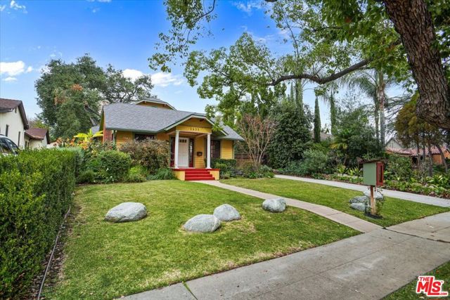 Experience quintessential Pasadena living, a perfectly remodeled California Craftsman Bungalow on one of the city's most enchanting tree-lined streets. This Arts and Crafts gem sits on a deep lot framed by historic streetlights and wide sidewalks. Inside, the open-concept living area shines with hardwood floors, a decorative tiled fireplace, and extensive built-ins. The gourmet kitchen is a chef's dream, featuring Shaker cabinetry, Quartz counters, built in filtered water, a farmhouse sink, and a premium Wolf stove. The home flows effortlessly into a spacious family room, that leads to a professionally landscaped backyard. This outdoor sanctuary boasts a majestic oak, brick patio, and vibrant gardens, a gardener's dream . The private Primary suite upstairs offers soaring ceilings, and breathtaking San Gabriel Mountain views. All bedrooms are generous in size. The guest bathroom will lure you into wanting to soak your worries away. Modern upgrades include a purified water filter, electric car charger, HVAC and a detached 2-car garage with a bonus 0ffice/room behind the garage. Located minutes from Metro, Eaton Canyon, and Victory Park, this home offers unrivaled walkability and style.