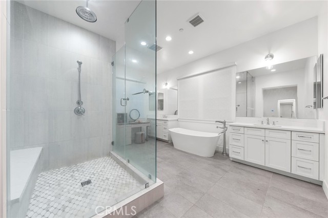 This extraordinary Mediterranean-inspired 4-bedroom, 6-bathroom estate is a statement of refined luxury, architectural elegance, and elevated living. Situated within an exclusive gated hillside community, the residence offers exceptional privacy, scale, and timeless design crafted for the most discerning buyer. Upon entry, a dramatic 16-foot soaring ceiling in the grand living room creates an immediate sense of arrival. The expansive open space is filled with natural light and enhanced by wide-plank hardwood flooring, custom full-height drapery, recessed lighting, and a sleek fireplace—perfectly balancing warmth and sophistication. The open layout is thoughtfully designed for both grand-scale entertaining and effortless everyday living. The gourmet kitchen is a true showpiece, featuring a full suite of Wolf professional-grade appliances, a Sub-Zero refrigerator, custom cabinetry, stone countertops, and an oversized center island. Thoughtfully designed for both elegance and functionality, the home is equipped with both a Western-style main kitchen and a separate Chinese (spice) kitchen, offering exceptional versatility while maintaining the refined aesthetic of the main living areas. The luxurious primary suite serves as a private sanctuary, distinguished by an impressive 14-foot-high ceiling, generous proportions, and refined finishes. The spa-inspired primary bathroom evokes a five-star retreat with dual vanities, a freestanding soaking tub, a walk-in shower, and sophisticated modern details. Each of the additional bedrooms is generously sized and paired with its own well-appointed bathroom, offering comfort, privacy, and convenience for family members and guests alike. Additional highlights include designer lighting, abundant storage, and meticulous attention to detail throughout the home. Set within a serene gated hillside setting with convenient access to shopping, dining, and major thoroughfares, this exceptional 4-bedroom, 6-bathroom residence offers a rare opportunity to experience elevated luxury living at its finest.