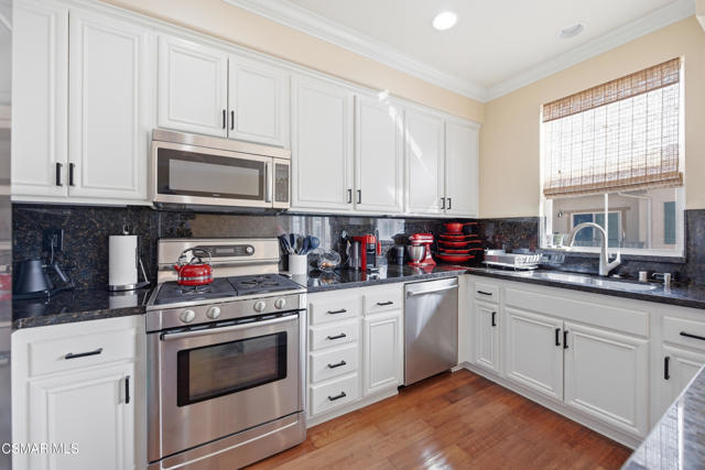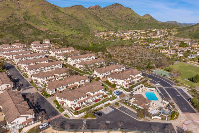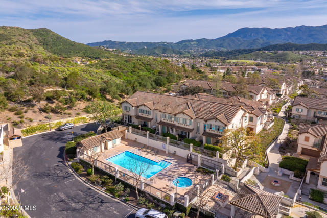 Located in the desirable Aldea community of Newbury Park, this beautifully situated 3-bedroom, 2.5-bath residence offers comfort, convenience, and scenic hill views. Residents enjoy resort-style amenities including a clubhouse, two sparkling pools, nearby parks, and access to hiking trails, creating an ideal blend of community living and outdoor lifestyle.The home features a spacious attached two-car garage on the lower level, complete with washer and dryer hookups and ample room for additional storage, a home gym, or recreational space--a rare and versatile bonus.Upstairs, the main living level welcomes you with a large living room anchored by a cozy fireplace, flowing seamlessly into the adjacent dining area and kitchen. The kitchen is thoughtfully designed with white cabinetry, granite countertops, and stainless steel appliances, ideal for both everyday living and entertaining. A convenient half bath completes this level.The upper level hosts all three bedrooms. The primary suite enjoys peaceful hill views and features an ensuite bathroom with dual vanities, soaking tub, and separate shower. Two additional bedrooms share a full hall bathroom, offering flexibility for family, guests, or a home office.With its desirable location, scenic views, functional layout, and access to sought-after community amenities, this home presents an excellent opportunity to enjoy the best of Newbury Park living.