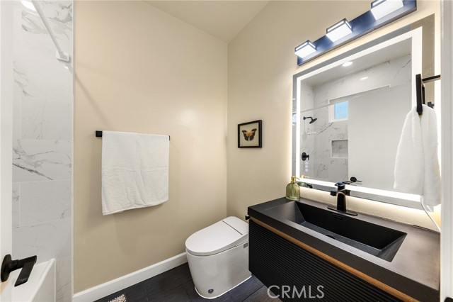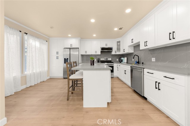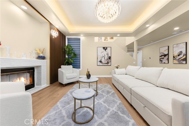 Discover a completely upgraded residence that truly resembles a brand-new home! This exceptional and stunning property is a must-see. It features a brand-new roof, doors, and windows, as well as a state-of-the-art A/C system, a modern kitchen and bathroom, new appliances, and beautifully landscaped front and back yards. The rooftop deck and high ceilings further enhance the space, complemented by a secure fence and solar lighting. Step inside to admire the custom-made, imported crystal chandeliers with adjustable lighting and the living room's unique ceiling design. The office seamlessly connects to the private rooftop deck, ensuring that every room is both spacious and filled with natural light. Enjoy amenities like skylights, smart home appliances and toilets, LED mirrors, and a walk-in closet. The waterfall-style island platform serves as a stunning centerpiece in the kitchen, while the spacious staircase is adorned with large tempered safety glass. Additional features include a double garage with epoxy flooring.Termite completed . Nestled in a safe, quiet neighborhood with friendly neighbors, this home boasts unique architecture and thoughtful design. Welcome to your dream home!