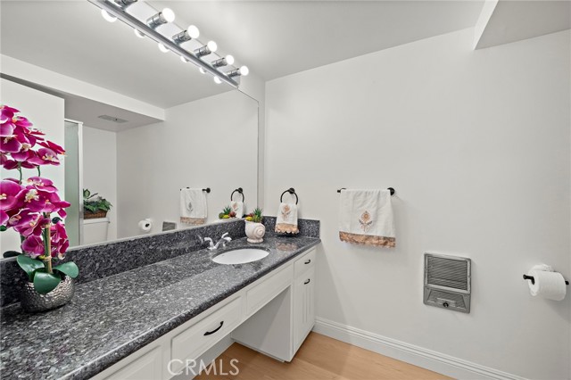 WELCOME HOME- To 226 Avenida Majorica Unit D-To this beautifully updated, SINGLE-LEVEL Co-op Majorcia Manor, ideally located in a vibrant 55 + Laguna Woods Community. As you enter, you're greeted by a spacious living room featuring BRAND-NEW LAMINATE WOOD -LOOK FLOORING that flows throught the home and opens through sliding doors to A PRIVATE PATIO, perfect for relaxing with a cup of morning coffee or tea, and entertaing family and friends. The adjacent dining area with a combo-ceiling fan light and kitchen that has been tastefully updated with GRANITE COUNTERTOPS, A NEW REFRIGERATOR And DISHWASHER, A COOKTOP WITH A SEPARATE WALL OVEN, And CUSTOM LIGHTING, creating a warm and functional space. The home is NEWLY PAINTED THROUGHT And enhanced with DUAL-PANE WINDOWS for comfort and efficiency. The generous primary bedroom offers AMPLE CLOSET SPACE WITH ADDITIONAL OVERHEAD STORAGE and an ensuite bath featuring a GRANITE VANITY and an ENCLOSED TUB/SHOWER COMBINATION. The guest or second bedroom is freshly painted with laminate flooring and crown molding, while the updated guest or second bath includes a FULL-SIZE SHOWER and GRANITE VANITY. This LOWER-LEVEL, NO STEP UNIT is conveniently located JUST STEPS FROM THE LAUNDRY and enjoys all the incredible amenities Laguna Woods Community has to offer-27 HOLE CHAMPIONSHIP GOLF COURSE, CLUB HOUSES, GYMS, SWIMING POOLS, COMPUTER ROOM & CLASSES, OVER 200 SOCIAL CLUBS TO JOIN, And so much more. A wonderful opportunity to enjoy comfortable, low-maintence living in anactive and welcoming community. All this ready for your enjoyment!!