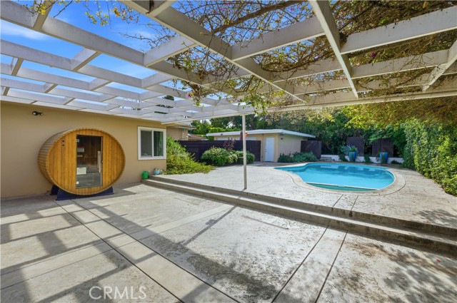 Welcome to this classic mid-century pool home, tucked deep within the desirable Park Estates neighborhood on a large lot. Offering two spacious primary suites plus a third bedroom, this well-maintained residence has all the major upgrades already completed—providing a solid foundation for your own cosmetic vision. Set on a large, flat lot elevated above street level, the home enjoys excellent privacy, a long driveway, and a 2½-car garage. Inside, beamed ceilings in both the living and family rooms deliver a true period-correct feel and timeless architectural charm. Significant improvements were completed in 2021, including a seismic foundation retrofit, new roof, HVAC system, updated electrical panel and wiring, and a tankless water heater. Outdoors, the property truly shines with newly replaced driveway and rear-yard concrete, fully updated pool plumbing and drainage, new pool plaster and tile, all-new pool equipment, and a convenient outdoor shower—perfect for Southern California living. Rear master bath can be expanded into oversize laundry room, front master bath also has expansion possibilities. Home and sewer line inspections available upon request. Lovingly cared for by the same family since 1960, this is a rare opportunity to own a character-rich home with strong bones, modern infrastructure, and endless potential in one of the area’s most sought-after enclaves.