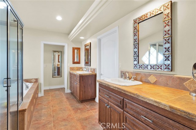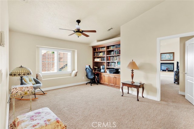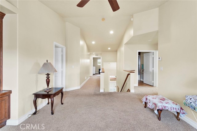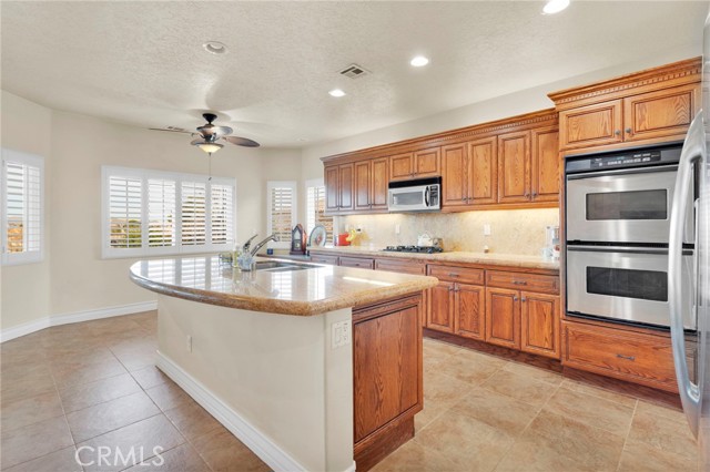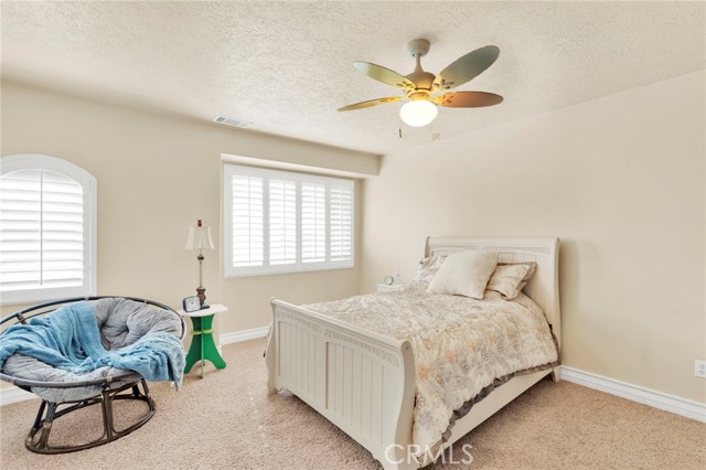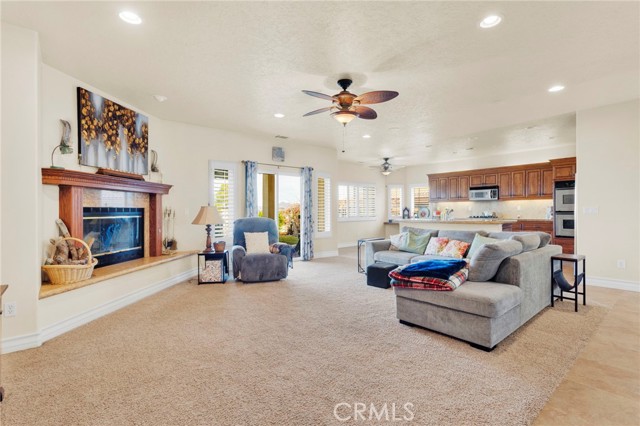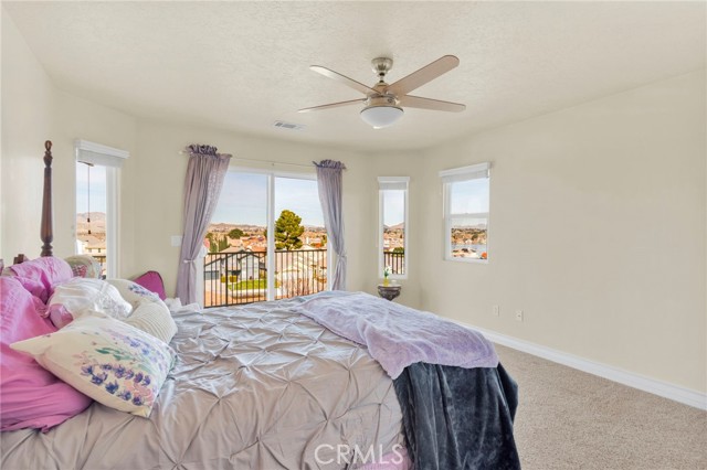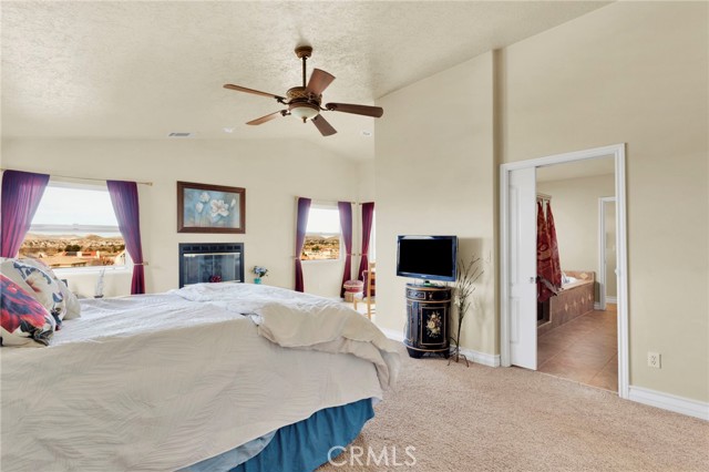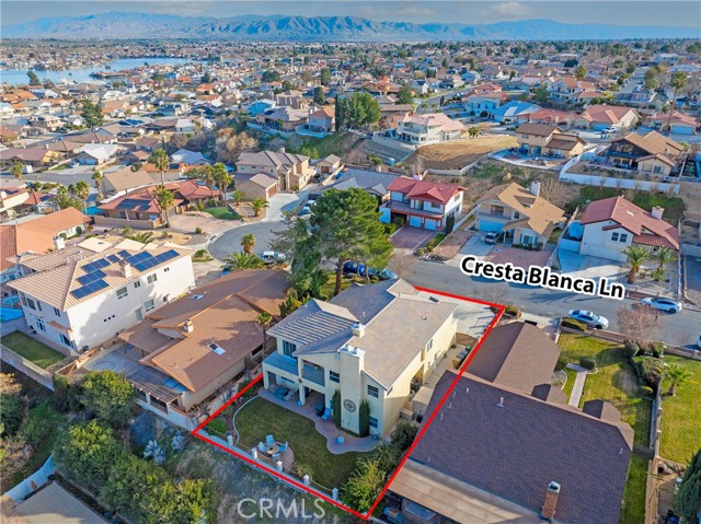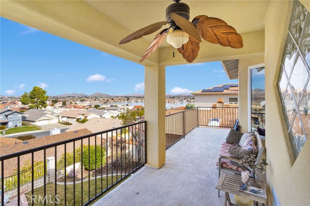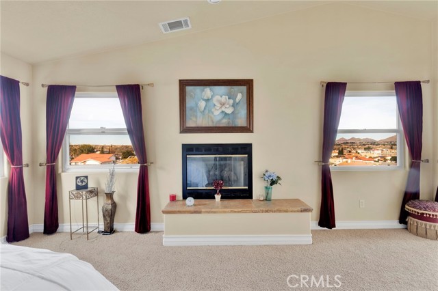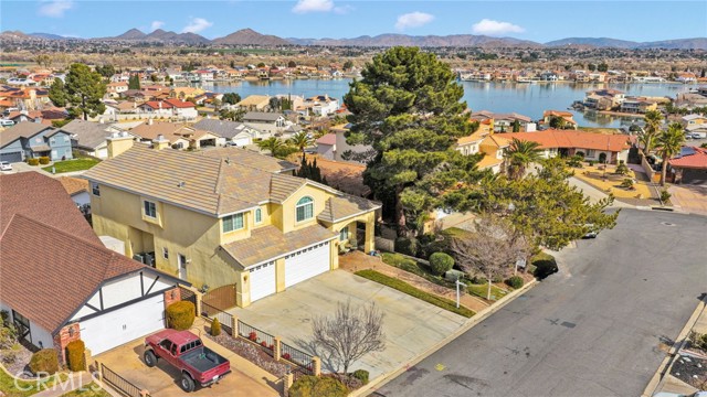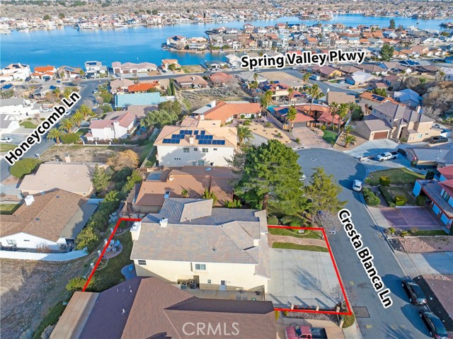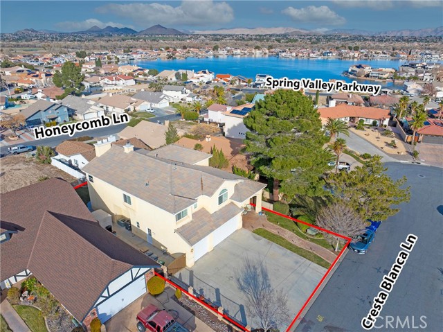 Elegant yet comfortable home in desireable area of Spring Valley Lake, this custom-built one-owner home offers exceptional space, thoughtful design, and breathtaking surroundings. Featuring 5 bedrooms and 3 baths, including a desirable junior suite on the main floor, with closet, access to bath, fireplace and private slider to rear patio that can be used as the 5th bedroom, game room or ? This impressive residence spans 3,683 sq ft with an open and airy floor plan ideal for both everyday living and entertaining. Enjoy a blend of formal and informal living areas, an upstairs loft, and three fireplaces that add warmth and architectural charm throughout. Situated on a premium view lot, the home captures incredible, unblockable lake and mountain views that create a truly serene setting. The chef ready kitchen features custom rich wood cabinetry, expansive counters and workspace, breakfast bar area, plus a light and airy nook for your casual dining. Adjacent and open to the kitchen is the king-sized family room with its own fireplace and access to the rear patio and yard. The luxurious primary suite is a private retreat, complete with its own fireplace, cozy sitting area, and an outdoor view deck—perfect for morning coffee or sunset relaxation. The spacious primary bath features a separate shower and jetted tub for spa-like comfort, long counter with dual sinks and spacious walk in closet. A convenient upstairs laundry room adds everyday practicality. Beautiful plantation shutters on many of the windows, and loads of storage throughout the home. 3 car garage is roomy with extra depth to possibly park a boat or larger vehicle. Block wall with wrought iron fencing allows for security without blocking any views! Located within a sought-after planned community, residents enjoy access to a private lake with miles of shoreline for boating, swimming, and fishing, three parks, an equestrian area with riding trails, and a beautiful private golf course available with separate country club membership. This remarkable home offers refined living, resort-style amenities, and unforgettable views—an exceptional opportunity to experience comfort, elegance, and lifestyle all in one. First time ever on the market! Don't delay-call your Realtor today!