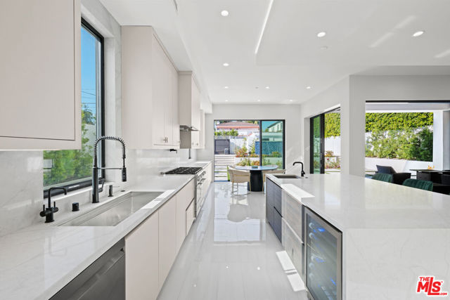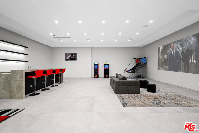 Exquisite Brand-New Contemporary Modern in Beverly Hills. Nestled in one of Beverly Hills' most sought-after neighborhoods, this brand-new contemporary modern residence offers an exceptional blend of sophisticated design, luxurious finishes, and state-of-the-art amenities. With striking curb appeal, expansive living spaces, and seamless indoor-outdoor flow, this home defines modern luxury.The open-concept floor plan is highlighted by 12-foot ceilings in the main living areas, creating a sense of grand volume. Expansive Fleetwood sliding windows and doors flood the space with natural light, while recessed lighting adds warmth and ambiance throughout. High-end finishes are evident at every turn, including Italian porcelain tile floors in the living areas and rich mahogany wood in all bedroom doors and floors. The chef's kitchen features Miele appliances, including a full-size refrigerator and freezer, an 8-burner stovetop, dual ovens, and a built-in espresso machine. A large central island provides ample space for meal prep and casual dining, and the kitchen flows effortlessly into the living and dining spaces perfect for entertaining guests or enjoying quiet family moments.Each of the home's bedrooms offers a serene retreat with spacious walk-in closets and spa-inspired bathrooms featuring custom finishes. The primary suite stands out with floor-to-ceiling sliding glass doors that open to a private balcony overlooking the pool and spa. The en-suite bathroom is a sanctuary, featuring an 8-jet soaking tub, a rain shower with steam, and sleek stone finishes.The expansive lower level includes a vast game room with 14-foot ceilings, ideal for a gym, home theater, or additional entertainment space. A full bar provides the perfect place to host guests, while the dedicated theater room offers a true cinematic experience. The fitness center is equipped to meet your every wellness need. An elevator ensures easy access to every level of the home.Outside, the beautifully landscaped grounds feature a stunning pool and spa with a waterfall feature, and a custom fire pit ideal for evening gatherings. The expansive backyard provides ample space for high-end entertaining or private relaxation. Smart home technology integrates lighting, climate control, security, and audio-visual systems, providing convenience at the touch of a button.Just moments from world-class shopping, dining, and entertainment, this property offers the ultimate in modern living, luxury, and convenience in one of the world's most prestigious locations.