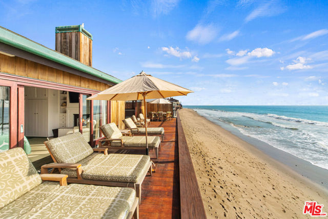 This exceptional Malibu Road beach home offers approximately 50 feet of coveted oceanfront, set on a pristine, sandy stretch of the iconic Malibu coastline. Designed to be both elegant and welcoming, the interior features rich hardwood floors throughout and an abundance of natural light. Floor-to-ceiling windows showcase sweeping ocean views and open onto a spacious beachfront deck perfect for enjoying the sights and sounds of the Pacific. The home includes three beautifully appointed bedrooms and a generous upstairs bonus room, ideal for lounging or entertaining. The beachfront primary suite is a serene retreat, with direct deck access and panoramic views that bring the coastline to your doorstep. A private, enclosed courtyard provides a peaceful space for outdoor gatherings, offering both seclusion and charm. With a dedicated staircase leading straight to the sand, this home delivers the ultimate in Malibu beachfront living. Available 6/1/2026 - 7/31/2026.