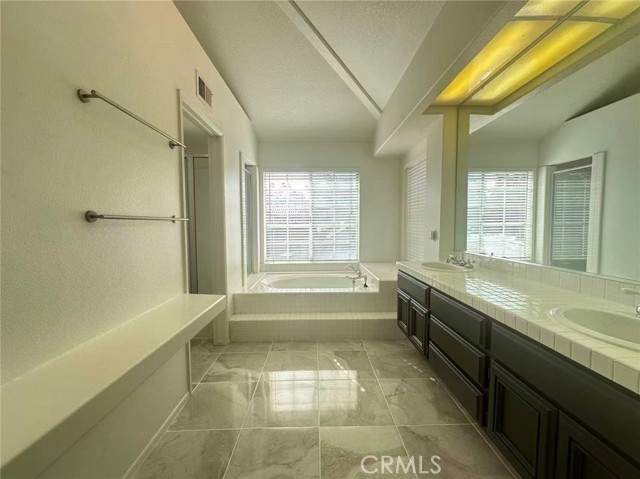 Please find a leasing agent to do the showing with you because this is a gated community. This is 4 bedrooms, 3 bathrooms, and 3 car garages, and approximately 2735 sqft home. Inside of a gate guarded community of Canyon Crest. The home built with a huge step-down living room, beautiful kitchen with center island opens to family room. One bedroom and one full bathroom on the main floor. Romantic master bedroom with large oval tub with a separate shower room, and a huge walk-in closet. New paint and new flooring through out.Meticulously maintained backyard with huge patio with cover. The association offers community swimming pool, spa, gym, tennis, sauna, clubhouse and much more. Do not miss the opportunity to live in this beautiful home.