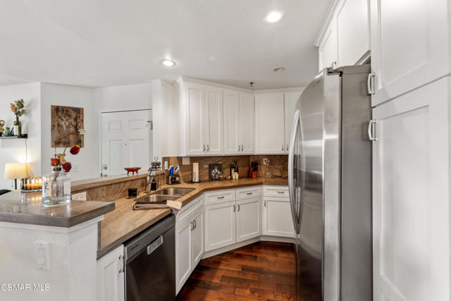 Welcome to this exquisite 1-bedroom 1- bathroom remodeled condo, a true urban oasis that seamlessly combines modern luxury with the tranquility of nature. Nestled in the heart of Oak Park, this residence offers a serene escape from the bustling world outside, with its most captivating feature being the breathtaking greenery & mountain views. As you enter into the condo, you'll be greeted by an open concept living space adorned with sleek, contemporary finishes and an abundance of natural light. The living area seamlessly flows into a stylishly appointed kitchen, complete with quartz countertops, custom cabinets, and newer appliances creating a space that is both functional and aesthetically pleasing. The living room with a stylish modern hardwood floors, smooth ceilings, and cozy fireplace opens to a private patio. Step onto the patio, and you'll be greeted by the mesmerizing view of trees that provide shade, privacy, and a sense of calmness. The oversized bedroom offers a walk-in closet, and large windows that frame the stunning outdoor scenery. This condo not only offers a luxurious living space but also provides a sense of community, complete with amenities such as sparkling pool, spa, tennis court, fitness center, racquetball and basketball court, volleyball area, and BBQ picnic spaces!