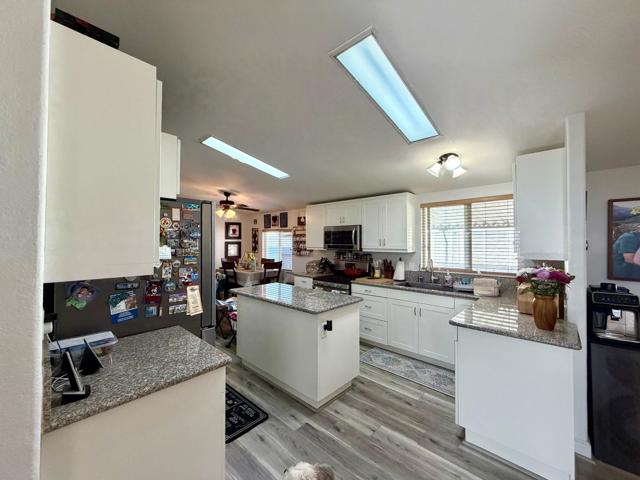 Pride of ownership shines throughout this beautifully maintained manufactured home, lovingly cared for by its original owner since 1997. With thoughtful upgrades and modern touches, this home offers comfort, functionality, and peace of mind for its next lucky family.Featuring 3 spacious bedrooms, 2 full bathrooms, plus an office/den that can easily convert into a 4th bedroom, this home provides flexible living space for growing families, guests, or work-from-home needs. The living room is warm and inviting with a wood-burning fireplace, creating the perfect setting for cozy evenings and holiday gatherings.Recent Upgrades & Improvements Include: New roof (2018) Water heater replaced (2020) New AC & heater (2023) New shower in the primary bathroom (2023) Home professionally leveled (2023) Vinyl flooring throughout (2025) Exterior freshly painted (2025) New storage shed (2025) Concrete driveway completed (2026) Water softener system installed (currently on a month-to-month contract that can be assumed)The kitchen is a true heart-of-the-home space with a large island that offers excellent storage, a great place to gather, and plenty of room to prepare meals. Many holidays and celebrations have been enjoyed here, with platters of food spanning the island while still allowing space for cooking and connection.Please note: there is no dishwasher. During the kitchen remodel, the dishwasher was intentionally sacrificed in exchange for additional cabinetry and storage.The designated washer/dryer space is conveniently located at the entry from the driveway. Over the years, this area has also accommodated a second refrigerator, but it could easily be converted into an oversized dry pantry for even more storage and organization.Situated along the quiet back row on the south side of the park, this home enjoys reduced traffic and added privacy--while still being close enough to enjoy the community amenities. Its location also helps minimize noise from Lincoln Avenue, offering a more peaceful living environment.The yard is a wonderful bonus--perfect for pets and outdoor relaxation. Please note: pets are subject to the park's specific pet restrictions.This home is located near several sought-after schools, including Lexington Junior High School and Arnold Elementary School, with Landell Elementary and the award-winning Oxford Academy also close by. These schools are highly desired for their academic reputation.