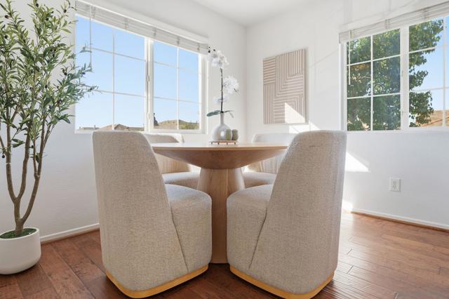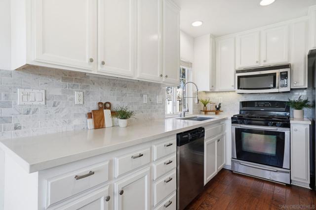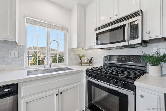 Bright, open, and beautifully refreshed, this 2 bedroom, 2 bathroom condo in Otay Ranch offers comfortable living with a clean, modern feel. Natural light fills the main living space, highlighting the wide plank flooring and seamless flow between the living, dining, and kitchen areas. The kitchen features white cabinetry, quartz countertops, a marble backsplash, ample prep space, and a functional layout that opens to the heart of the home. Step through the sliding doors to a private balcony with neighborhood views perfect for morning coffee or unwinding at the end of the day. Both bedrooms are well proportioned, and the two full bathrooms provide convenience and privacy. Washer and dryer are located inside the unit for everyday ease. This home also includes two parking spaces: a one car garage plus an additional assigned space, offering valuable flexibility for parking and storage. Located in the established community of Otay Ranch, this home provides access to nearby parks, shopping, dining, and commuter routes while maintaining a peaceful residential setting. Clean lines, great light, and an easy floor plan make this home ready to enjoy from day one.