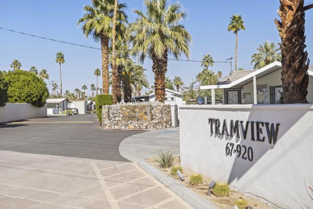 Welcome to affordable Palm Springs/Cathedral City on the dividing line this location is close to everything. Shop and Dine, Casino. Community Pool is never overcrowded in this quaint tucked away place called TramView.2 Bedrooms 2 full Baths, at this price is a ''deal''. The home is self contained, Kitchen has Pantry, Dishwasher, Laundry W/D inside, Central Air, Duel Pane Windows,Fenced in ''Yard ''for pets and privacy rare for this price range. Enjoy the lifestyle this location provides and Palm Springs, it doesn't get better than this. When considering Mobile Manufactured Homes this one should be top of List. Contact listing agent for loan and lenders for Mobile homes. Sellers are motivated bring an offer.