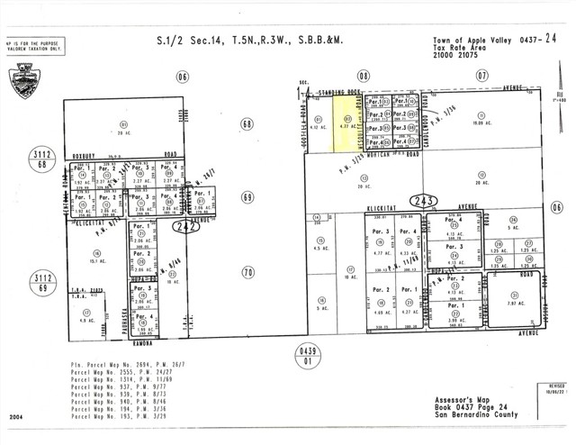 Approx. 5 acres located on Standing Rock Rd in the rapidly developing north Apple Valley area. Property is near the corner of Ocotillo Rd and Standing Rock Rd, where water appears to be available (buyer to verify). Just outside a large LG Homes new construction community with over 145 homes currently under development. Underground electricity appears to be available along the street. This prime parcel is situated in a fast-growing corridor with existing and planned mega warehouses, manufacturing, and industrial facilities nearby, and is minutes from the proposed Las Vegas high-speed rail station and the expanding Village Center area. Zoning is Estate Residential (1 dwelling per acre), and the parcel appears to offer potential for a lot split into up to four parcels, similar to the neighboring parcel to the east (buyer to verify with the Town of Apple Valley). Enjoy wide-open spaces, scenic mountain views, and starry night skies, while remaining close to schools, shopping, and major employment and growth centers. A great opportunity to invest in the booming north Apple Valley area.