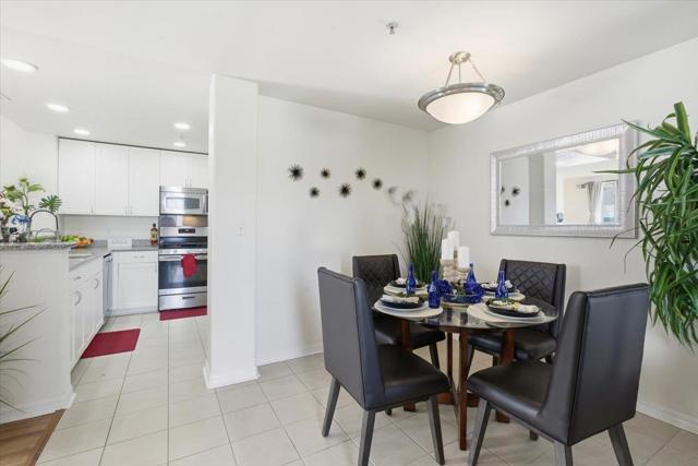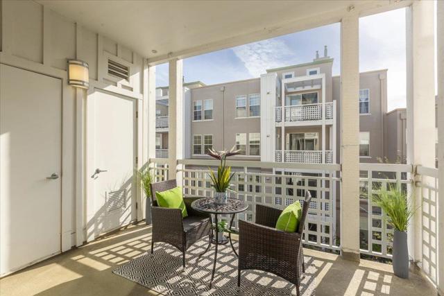 Bright, spacious, and beautifully appointed, this Miraval two bedroom, two bathroom home blends luxury and convenience. Enjoy a picnic lunch on the deck, overlooking the interior of the community. Or sit by the fireplace and read a book. The living room provides an abundance of natural light and carefree hardwood laminate flooring. Cozy carpet in the bedrooms meet the convenience of tile in the kitchen. The kitchen features granite countertops, gas cooking, recessed lighting, and stainless steel appliances, including a brand new refrigerator. A full-size washer and dryer sit behind the kitchen. Ample storage with a walk-in closet in the bedroom, and storage off the deck. The home has two underground parking spaces close to the elevator. Miraval's location is superb, next to Rivermark Plaza. Walk to Safeway, Red Robin, Peet's Coffee, Chipotle, Rise, Poke House, and the many other nearby restaurants and shops. Drive to Levi's stadium, or enjoy the adjoining walking and bike trails. Conveniently located between Freeway 101 and Interstates 880 & 680. Or simply stay home and enjoy all the amenities - the lap pool, spa, gym, community movie theater, and BBQ area.