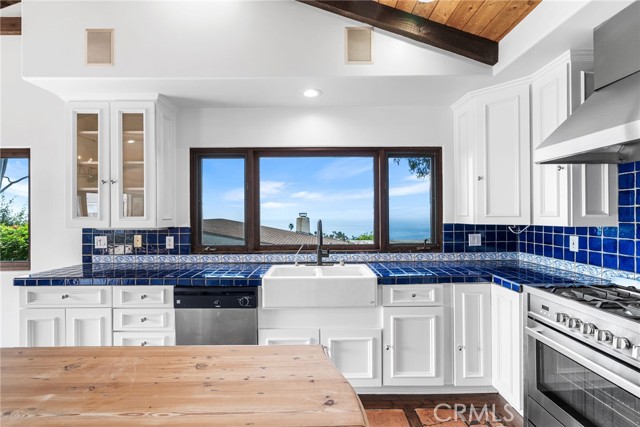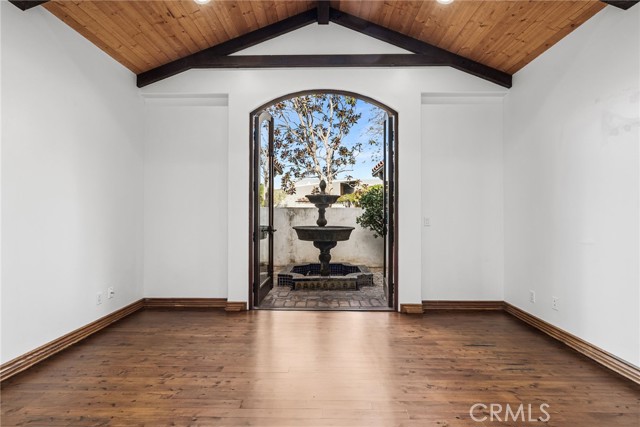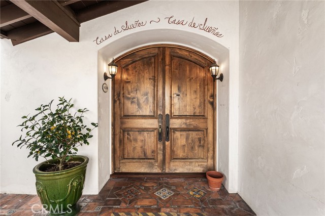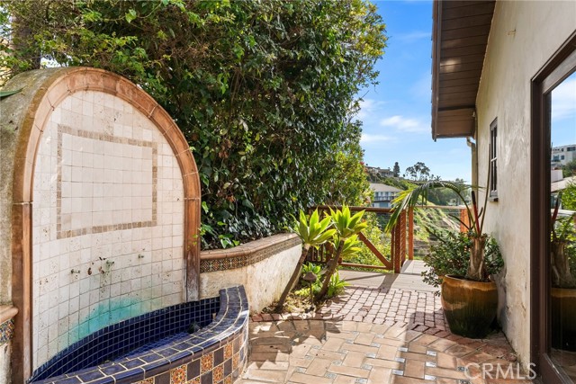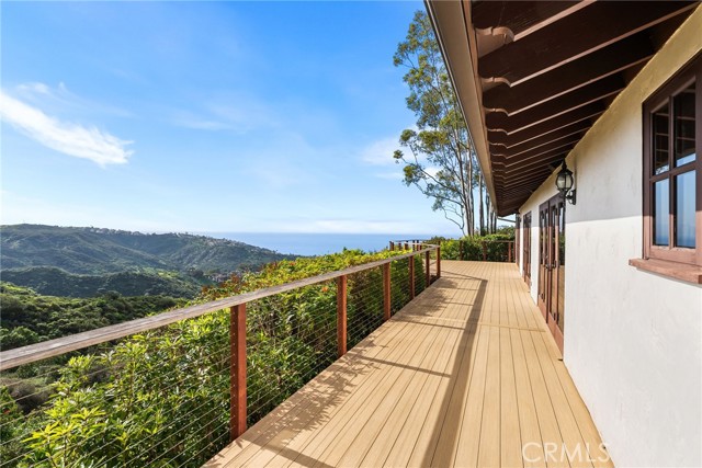 Now available for lease in Laguna Beach’s sought-after Upper Temple Hills, this single-level Spanish Colonial offers sweeping ocean and canyon views, timeless charm, and an easy indoor-outdoor flow that connects nearly every room to a deck, courtyard, or patio. A set of rustic wooden gates opens to a private front courtyard with a soothing fountain, setting a serene tone from the start. Inside, the chef’s kitchen features white cabinetry, a large center island, and a professional 6-burner Wolf range, and it opens directly to the dining area—both positioned to take in ocean views through picture windows. The expansive living room showcases beamed ceilings and a dramatic floor-to-ceiling brick fireplace, with dual French doors that lead to an ocean-facing deck spanning the length of the home, ideal for entertaining and sunset evenings. The primary suite is a quiet retreat with French doors to the deck, a walk-in closet, and an ensuite bath, while the second and third bedrooms each enjoy access to the courtyard for private guest or family spaces; a flexible bonus room (perfect as an office or den) also opens to the courtyard. Just below the main deck, a landscaped lower yard with a grassy lawn and stone patio adds another outdoor setting to relax or gather, All of this sits just minutes from Laguna’s beaches, popular restaurants, boutique shops, and galleries—an exceptional lease opportunity in one of the city’s most sought-after neighborhoods.