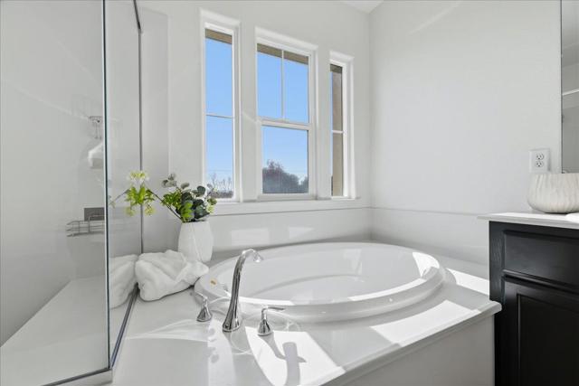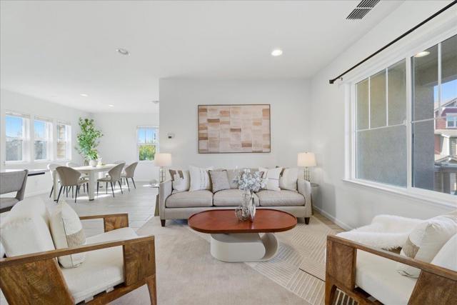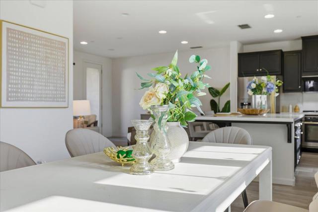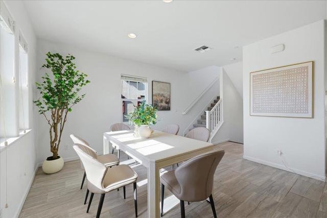 Beautiful end-unit townhouse located in a top-rated Fremont school district! This upgraded home offers approximately 2,061 sq ft of bright, open living space with high ceilings and abundant natural light. The ground level features a private suite with a full bathroom, ideal for guests, extended family, or a home office. The main living level showcases an open-concept floor plan with recessed lighting, elegant tile flooring, stainless steel appliances, and a large quartz kitchen island perfect for cooking and entertaining. An oversized balcony off the living room provides an ideal space for outdoor dining and gatherings. The spacious primary suite includes a generous walk-in closet and a luxurious en-suite bathroom with dual vanities, soaking tub, and separate shower. Additional highlights include a 2-car side-by-side garage, in-unit laundry, central A/C, tankless water heater, and more. Ideally situated near 16-acre Northgate Park, with easy access to Alameda Creek Trail, community parks, and Coyote Hills. Walkable to a variety of restaurants and popular markets including Ranch 99, Whole Foods, and Safeway. Convenient commuter access to I-880, Highways 84 & 92, and BART, with a short commute to Meta, Google, Tesla, and many other major tech companies.