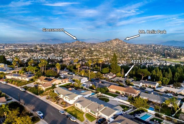 It's not just a home-it's a lifestyle. Highly sought-after, 1 level, Eastridge home with stunning views of area mountains and city lights! Home is nestled amongst tropical landscape on the 13,900 sq.ft. lot for utmost privacy and quiet! Impeccable pride-in-ownership greets you! Enter and fall in love with the beautiful flowing natural light! Big living room with extra large slider bringing the gorgeous views inside! Spacious family room with cozy fireplace for cooler evenings! Can easily add a table in both the living and family rooms for more formal meals! Great kitchen with all the bells and whistles the chef in the family will love + tons of counter and cabinet space! Breakfast area for your more casual meals! Light and bright primary suite with updated en-suite bath! Additional bedrooms are nicely sized! Huge view backyard with covered patio, large deck area, basketball court, lush landscaping, plenty of room to play or entertain, and amazing Mt. Helix, area mountains, and city light views every day! Go down stairs to additional yard space and big storage shed! Details not to miss-2 car garage, inside laundry room, cute powder room, central heating and air +! Make this YOUR home-before someone else does! Welcome Home!