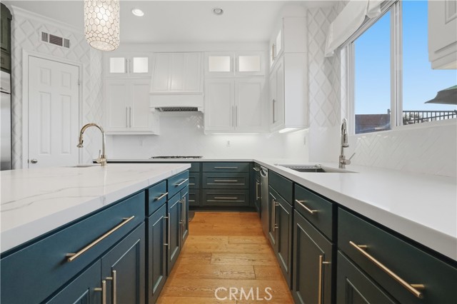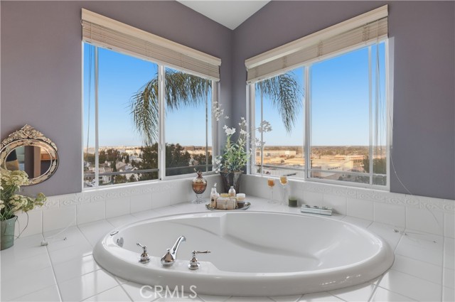 Nestled at the end of a quiet cul-de-sac within an exclusive gated community, this exceptional five-bedroom executive home offers privacy and sweeping views of the San Gabriel Mountains. Built in 2003 and thoughtfully upgraded, the residence blends timeless design with modern comfort. The gourmet kitchen features premium stainless steel appliances, double ovens, quartz countertops with marble veining, dual sinks, gold accents, lighted cabinetry, a walk-in pantry, and an abundance of cabinetry for optimal storage and functionality. The versatile floor plan includes a main-level ensuite bedroom, rich hardwood flooring, two fireplaces, formal dining room, and expansive living spaces filled with natural light. A dedicated laundry room with built-in storage and utility sink adds everyday convenience. Upstairs offers two additional ensuite bedrooms and a spacious primary suite positioned to capture mountain views from its windows. The primary bathroom showcases an oversized vanity area with extensive storage, a separate soaking tub and walk-in shower. Relax in the bath while enjoying mountain views and watching planes descend in the distance. The low-maintenance backyard features a raised deck, above-ground spa, and panoramic views—perfect for enjoying sunrises, sunsets, and seasonal fireworks. Split AC systems provide enhanced comfort and efficiency. A three-car garage with ample storage and an extended driveway complete the home. Ideally located in Signal Hill with convenient access to freeways, beaches, CSULB, Long Beach Airport, and scenic walking trails.