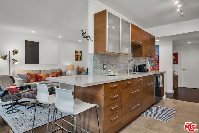 FABULOUS furnished rental - prefer 1 year. Designer-remodeled details throughout. Gorgeous dark brown hardwood floors. Spacious open layout with TONS of light and an abundance of trees all around you! Gourmet kitchen with hi-end appliances, ultra-modern cabinetry and tons of storage. Electric blinds in liv room w sweet balcony overlooking the hills. Dining room flows off the kitchen and living room with a gorgeous stone-walled electric fireplace. Wonderfully expansive Primary bedroom with wraparound walk-in closet. Beautiful primary bath. Second bedroom the perfect size for guests with queen size sofabed. Guest bathroom with separate shower. Laundry stacked and in-unit closet + storage. New Central HVAC. Two side-by side, gated parking spots next to the elevator. Steps to famous Runyon Cyn hiking trails. Incredible location just 3-minutes to Sunset Strip, boutiques and fun!