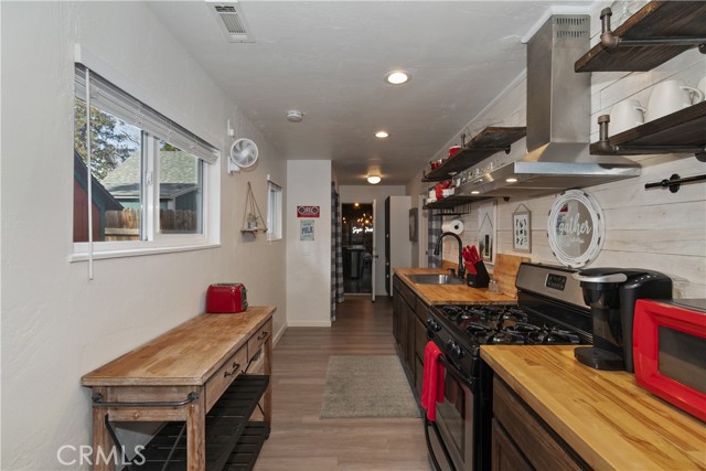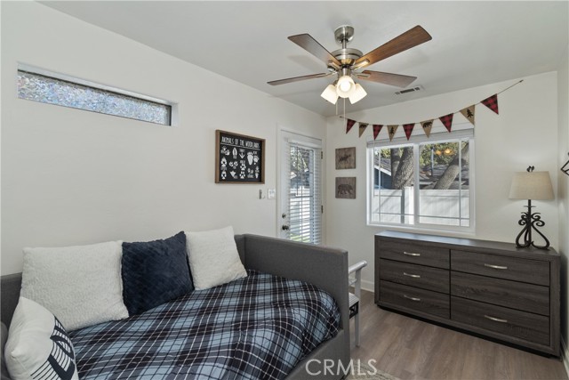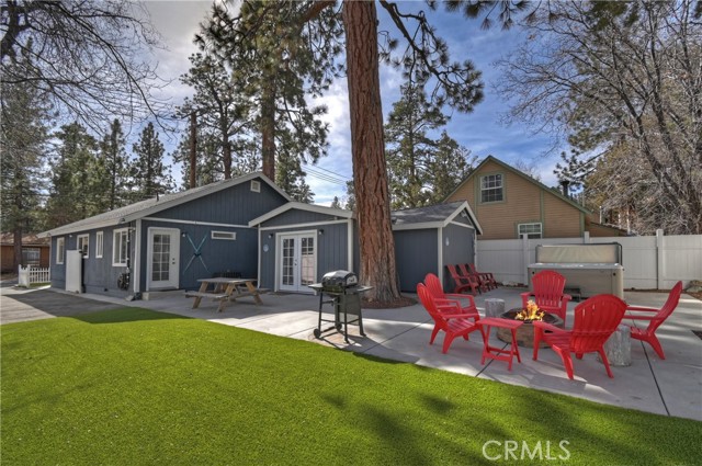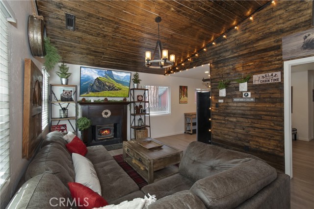 Welcome to the Sugar Shack ~ Beautiful Single-Level Home ~ A True Entertainers Dream ~ This turn-key residence is perfectly designed for comfort, entertainment, and easy living ~ From the moment you arrive, you’ll appreciate the thoughtful design, premium finishes, and exceptional indoor-outdoor flow ~ Inside, the home welcomes you with tasteful design, and a bright, open floor plan accented by luxury vinyl flooring throughout ~ The dining area flows effortlessly into the living space, complete with a cozy, crackling, wood stove insert for maximum efficiency ~ The kitchen and laundry area (with stackable washer/dryer) are both functional, and well-appointed ~ The layout offers excellent separation of space, including a full bathroom with tub, a versatile den currently used as a workspace, and a spacious primary bedroom with ensuite bathroom and shower ~ To call this home charming is truly an understatement ~ It’s a rare blend of style, comfort, and functionality, complete with tankless water heater, and forced air heating ~ The custom game/entertainment room is a showstopper, featuring mounted heaters, a quartz bar setup, epoxy coated flooring, and ample space to host any game day or gathering, in style ~ Double doors open seamlessly to the backyard, creating the perfect entertaining experience, with views of the beautifully landscaped outdoor space ~ Step outside to your bubbling jacuzzi, fire pit, BBQ area, and a spacious yard finished with turf ~ All fully fenced in low-maintenance vinyl material for convenience ~ A side gate provides RV or boat parking with easy access from the flat driveway ~ Neighboring oak trees shade the backyard in summer, and create a stunning seasonal display in the fall. Offering exceptional flexibility for full-time living, second-home use, and/or income potential. Come see The Sugar Shack today!