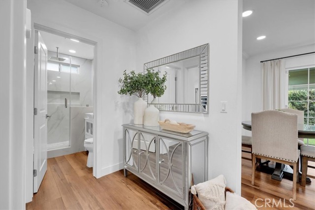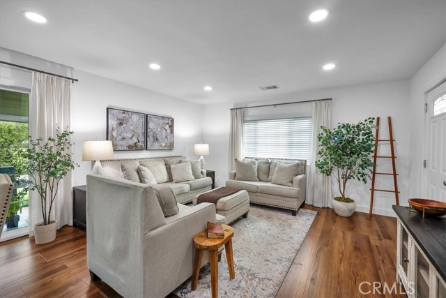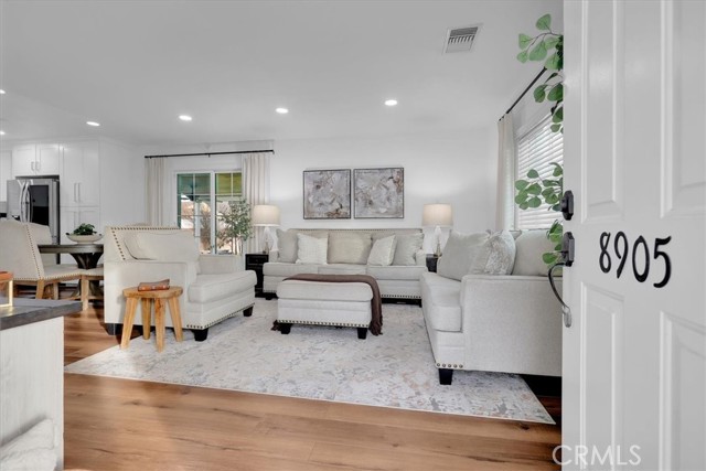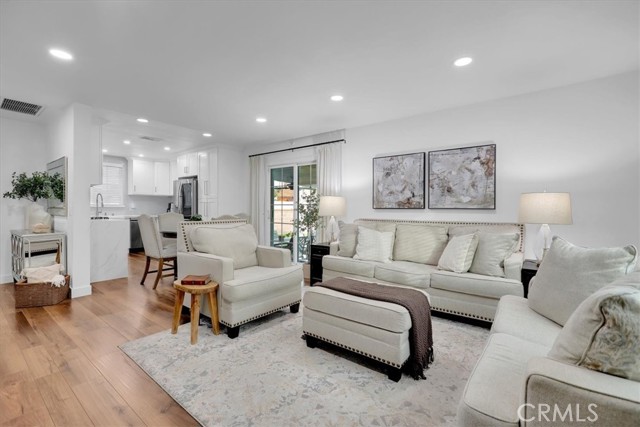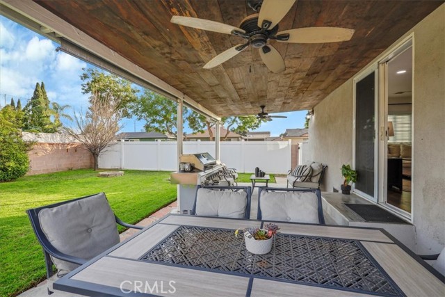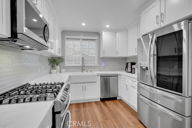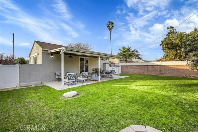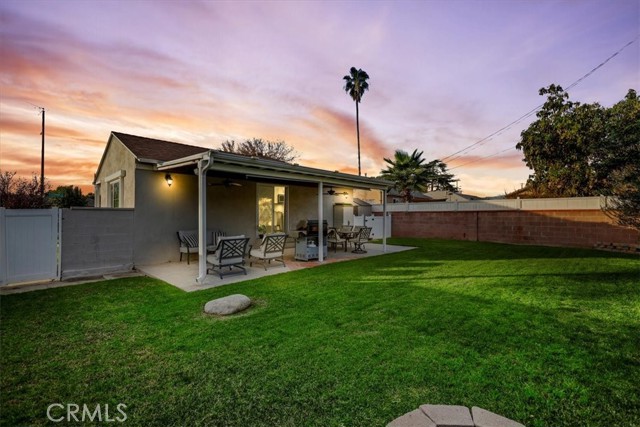 Beautifully renovated home shines inside and out! This gorgeous home is nestled on a desirable corner lot with a grand back yard. N Sunlight floods the open living space through large windows and sliding glass doors, creating a bright and airy atmosphere where the living room, dining area, and stylish kitchen connect seamlessly. The heart of the home is a charming U-shaped kitchen, featuring bright white cabinetry, gorgeous quartz countertops, a white glass subway tile backsplash, a classic farmhouse sink and new LG stainless steel appliances. The adjoining dining area offers the perfect spot for casual meals and easy entertaining. Thoughtfully designed for privacy, the bedroom and bath are situated separately from the main living areas. The stunning, fully renovated bathroom showcases a frameless LED-lit vanity mirror, a modern vessel sink vanity, and floor-to-ceiling tile in the shower, complete with a Delta oversized rainfall showerhead and matching fixtures. Step outside to a generous backyard designed for relaxation, featuring a large covered patio and a spacious grassy area, ideal for play, pets, or weekend gatherings. This home ensures peace of mind with major upgrades including new HVAC system, new roof with seamless gutters, new plumbing throughout, new tankless water heater, NUVO Complete water softener system, new windows throughout, 7-station sprinkler system, new laundry hookups, new recessed lighting, luxury vinyl plank flooring throughout, including the garage. Live beautifully from day one with modern design, smart flow, and total ease. Call for an appointment before this beauty is sold!!