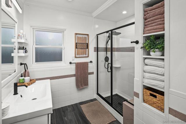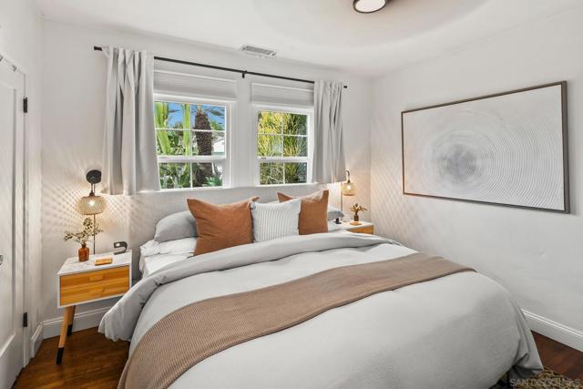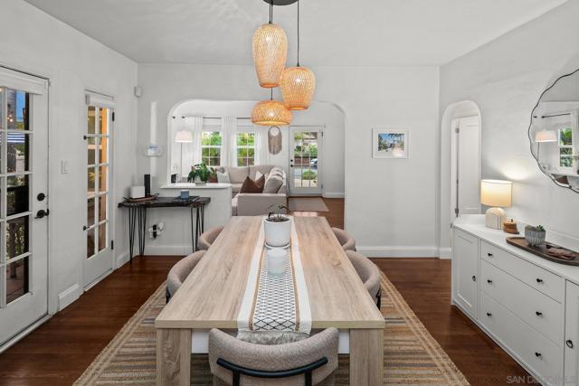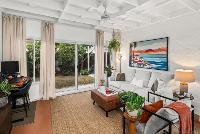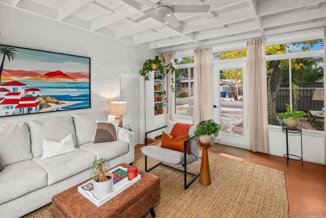 Welcome to Casa De Harvard, a Spanish Revival home set on a desirable 6,000 square foot corner lot that offers privacy, charm, and exceptional indoor outdoor living. A gated driveway leads to a fully enclosed courtyard that provides rare privacy and a peaceful outdoor retreat. The dining room opens directly to a covered lanai accented with charming Talavera tile, creating seamless flow for everyday living and weekend gatherings. Inside, classic character meets thoughtful updates. Original oak hardwood floors, coved ceilings, and abundant natural light create a warm and welcoming atmosphere. The updated kitchen features quartz countertops, a generous center island with seating, stainless steel appliances, ample cabinetry, and a farmhouse sink. Just off the kitchen, an enclosed sunroom serves as a flexible bonus room ideal for a guest room, home office, creative space, or optional third bedroom, with direct access to both the private grassy yard and the gated driveway. The home offers two bedrooms and an updated bathroom, along with recently installed central heating and air conditioning. Additional highlights include solar panels, a new tankless water heater, and drought tolerant irrigated xeriscape landscaping throughout the property. The oversized one car garage is finished with GarageTrac flooring and can easily function as a gym or workspace. Located just one mile from La Mesa Village and close to award winning schools, dining, shopping, beaches, and the Kroc Center, this move in ready home delivers standout value and a lifestyle centered on comfort and privacy.