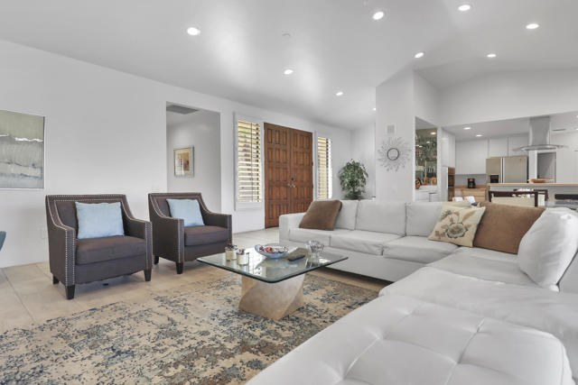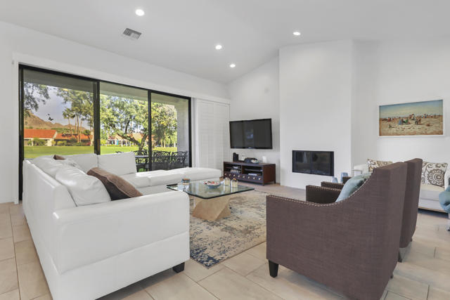 Welcome to an inspired desert retreat in the highly coveted community of Duna La Quinta. Completely remodeled with exceptional attention to detail, this stunning residence captures the essence of modern luxury while honoring the timeless beauty of its surroundings.From the moment you step inside, soaring vaulted ceilings and expansive walls of glass create a breathtaking first impression -- framing uninterrupted golf course fairways and dramatic southwestern mountain vistas. Natural light pours into every space, enhancing the home's open, flowing design and creating an atmosphere that feels both expansive and serene.The thoughtfully curated interiors showcase designer finishes, refined textures, and custom lighting that elevate each room while maintaining a warm, inviting elegance. The open-concept layout allows the living, dining, and kitchen spaces to connect seamlessly -- perfect for intimate evenings or effortless entertaining against a backdrop of spectacular desert sunsets.The primary suite is a private sanctuary, designed for relaxation and renewal. Its spa-inspired bath features a freestanding soaking tub, a spacious walk-in shower, dual vanities, and a sense of calm that feels like a boutique resort. Each of the two additional bedrooms offer generous proportions and its own en-suite bath, ensuring comfort and privacy for guests. A stylish powder room adds convenience for gatherings.Outdoor living is simply extraordinary. The private patio overlooks lush fairways and captures sweeping mountain views painted in golden evening light -- an idyllic setting for morning coffee, sunset cocktails, or quiet reflection beneath desert skies.Nestled deep within the guard-gated enclave of Duna La Quinta, this residence offers a peaceful yet connected lifestyle just moments from world-class golf, Old Town La Quinta, fine dining, boutique shopping. This community is only 10 minutes from the world famous ''El Paseo'', our desert's version of Rodeo Drive.Move-in ready, turnkey and masterfully upgraded, this home is not simply a residence -- it is a place to live beautifully.