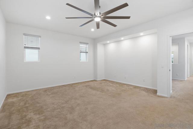 Beautiful move in ready 5 bedroom 4 bath home nestled in Otay Ranch. This home offers a spacious and thoughtful floorplan, highlighted by fresh new paint, an open main living area, an inviting loft, ideal for guests, multigenerational living, or extended stays. The layout provides exceptional flexibility, accommodating multiple living zones, work-from-home needs, or comfortable gathering spaces. The property features a fully cemented side yard with a covered patio with recessed lighting and ceiling fan. Residents of this community enjoy access to resort-style amenities, including a pool, lush parks, pickleball courts, and beautifully maintained common areas that enhance everyday living.