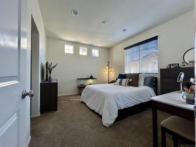 Newer Town home in the Montecito complex of Otay Ranch, 3 levels. First level is the attached garage with direct access to unit. 2nd level is the living area, kitchen with the primary bedroom and the den, which could be used as another bedroom (without closet). 3 floor has large 2nd primary bedroom with its own bathroom. wood like flooring in the living area and carpet in bedrooms. Just across the street from elementary school