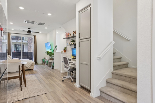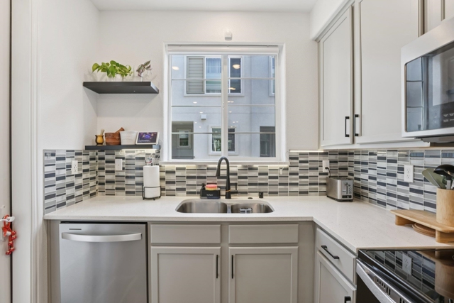 Experience modern, contemporary living in the Bay37 community at Alameda Landing, where scenic surroundings and everyday convenience come together. This charming, turn-key townhouse-style condo offers a bright and stylish layout, and the added benefit of a private 1-car garage with extra storage. The home features an updated kitchen fully equipped with a tile backsplash, plus 2 tranquil private balconies ideal for morning coffee, reading, or relaxing evenings - making indoor-outdoor living feel effortless - and a living and dining area on the main floor. The upper level offers a serene bedroom retreat which opens to a scenic balcony, an in-unit laundry closet adds to the comfort of true, easy living, in addition to a 2nd bedroom. Natural light and recessed lighting complement the home’s contemporary design throughout, creating a calm, inviting atmosphere from day to night. Furthermore, the property comes with fully owned solar system. Close to Alameda Landing shopping and dining and the SF Bay Ferry, this home delivers an easy, coastal East Bay lifestyle in one of Alameda’s most convenient communities, offering a connected, waterfront-oriented lifestyle.
