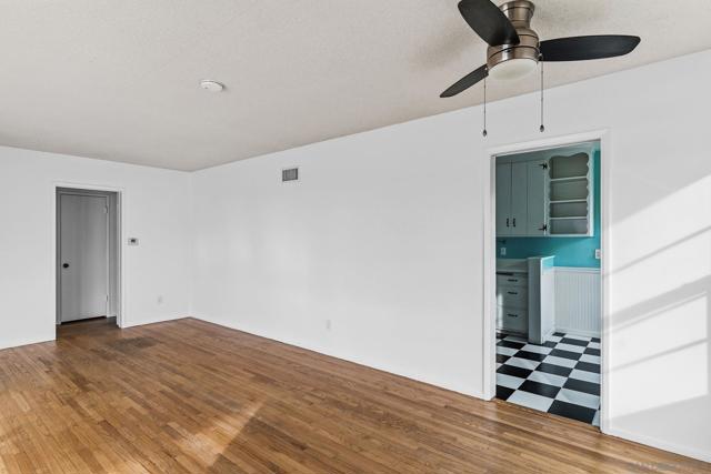A rare blend of character, comfort, and garden-centered living, this thoughtfully refreshed single-level home offers bright interior spaces and an exceptional backyard designed for outdoor enjoyment and garden focused landscaping. Inside, natural light pours through wide windows onto original hardwood floors, creating warm, inviting living spaces with clean lines and timeless appeal. The main living area is open and flexible, ideal for both relaxed daily living and easy entertaining. The kitchen brings distinctive personality with curated vintage style, classic cabinetry, generous storage, and iconic black-and-white tile flooring — blending charm with functionality. Adjacent dining space enjoys views toward the greenery, reinforcing the home’s indoor-outdoor connection. Bedrooms are comfortably sized and filled with light, while the updated bath features modern tile work and a glass-enclosed shower for a crisp, move-in-ready finish. What truly sets this property apart is the outdoor environment. The backyard has been intentionally developed into a productive and beautifully layered garden space featuring raised planting beds, mature fruit trees, established landscaping, and an area of turf. Whether your vision is farm-to-table living, weekend gardening, outdoor dining, or simply a private green retreat, this yard delivers both function and lifestyle. The garden landscape is both beautiful and productive, featuring a diverse collection of mature fruit trees including orange, grape, plum, peach, blackberry, avocado, tangerine, apricot, and macadamia nut, along with a dedicated area of native plantings designed to support pollinators and year-round bloom. An expansive covered patio extends the living space outdoors, creating a year-round gathering and entertaining area. The layout supports multiple uses, garden cultivation, play space, pets, and future customization all within a private, usable setting. Attached garage, backyard shed, generous driveway parking complete the property. Just off the kitchen is an additional bonus room with expanded cabinetry and storage that offers flexible use and could easily function as a large laundry room, office, or creative workspace. Positioned on a corner lot and slightly elevated above the street, the home enjoys added presence and privacy. Additional interior storage is thoughtfully incorporated, including dual hallway closets for everyday convenience. A home that offers not just living space, but lifestyle, where indoor comfort meets outdoor abundance. Set in the desirable Allied Gardens neighborhood, and the highly desirable 92120 zip code, this home offers exceptional access to some of San Diego’s best outdoor recreation, including nearby Mission Trails Regional Park, Cowles Mountain, and Lake Murray, with miles of hiking, biking, and walking trails just minutes away. The location is equally convenient for daily living, with quick access to major freeways, Costco, grocery stores, local shopping, neighborhood dining, and essential services, including a hospital just up the street. Downtown San Diego, beaches, and San Diego International Airport are all within approximately a ten-minute drive, making it easy to stay connected while enjoying a nature-forward community setting. A home that offers not just living space, but lifestyle, where indoor comfort meets outdoor abundance.