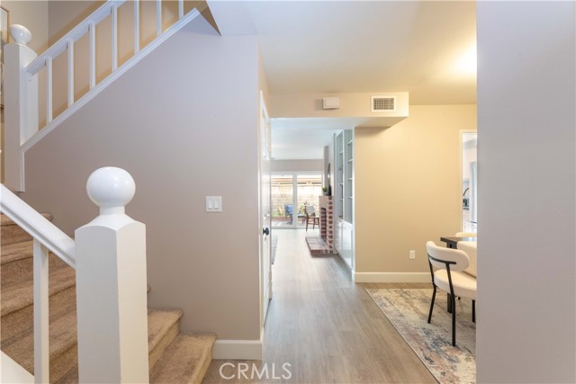 Wonderful opportunity to own this freshly painted, 3 bedroom, 2.5 bath townhome located in the highly desirable Northwoods Village community! This beautiful townhome offers a spacious living room with a wall of newer sliding glass doors which open to your private patio. The living room also features a brick fireplace and built in bookshelves which creates a lovely ambiance. (the gas has been capped off and the logs remain) The galley kitchen has plenty of storage with room for a cafe table at the end that overlooks the patio, with its own set of sliding glass doors. The other end flows into your dining room. 1459 square feet of living space is quite roomy and includes it's own laundry room with your side by side washer & dryer. Newer HVAC , upgraded windows, water heater, and more! Upstairs you will find an oversized primary bedroom with an open concept for a walk-in closet sporting it's own chadelier, and of course, your own bath room with an updated vanity. The additional 2 bedrooms have closet inserts allowing opportunity to stay organized! A full bath is also upstairs with a 1/2 bath on the first floor. The 2 car garage is not only private and attached to your home, it has direct access to your home! The complex has a pool, spa and club house. Conveniently located near the 91 and 5 freeways, churches, schools, shopping and public transportation. This is a fantastic place to call home! Don't miss out! Community pool & spa. Move in ready! New to the market.Don't Miss Out!!