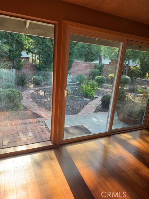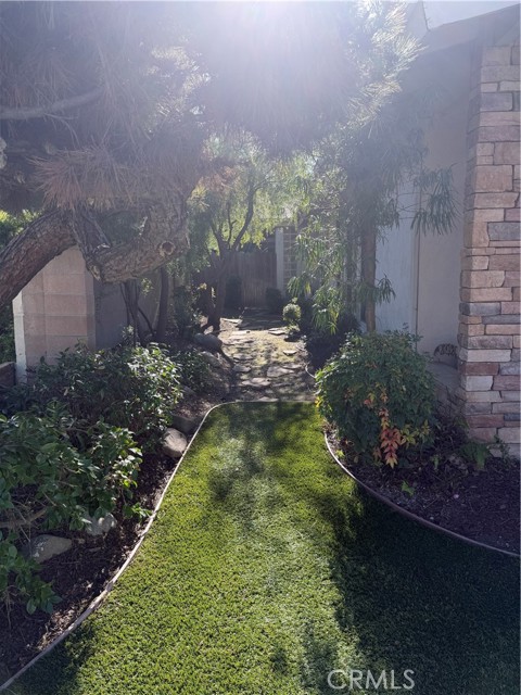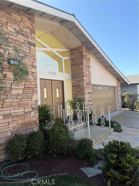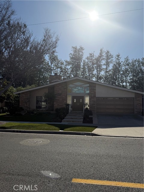 Welcome to this beautiful single-story home featuring fantastic curb appeal with a classic stone like facade and a spacious driveway. Step inside through the double-door entry to discover a bright and open floor plan highlighted by gleaming wood/laminate floors throughout. The heart of the home is the updated kitchen, complete with granite countertops, rich wood cabinetry, and stainless steel appliances, including a built in wall oven. Relax in the inviting living area featuring a cozy stone like fireplace and large sliding glass doors that flood the space with natural light and offer seamless indoor-outdoor living. The primary suite includes an ensuite bathroom with a tiled shower and glass-block accents. Outside, enjoy a private backyard retreat with a patio area perfect for entertaining. Don't miss this opportunity!