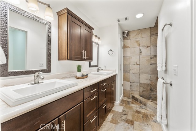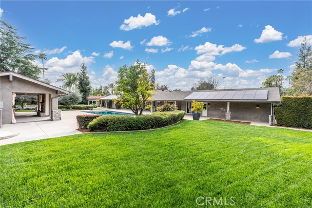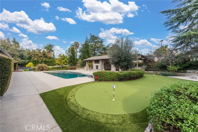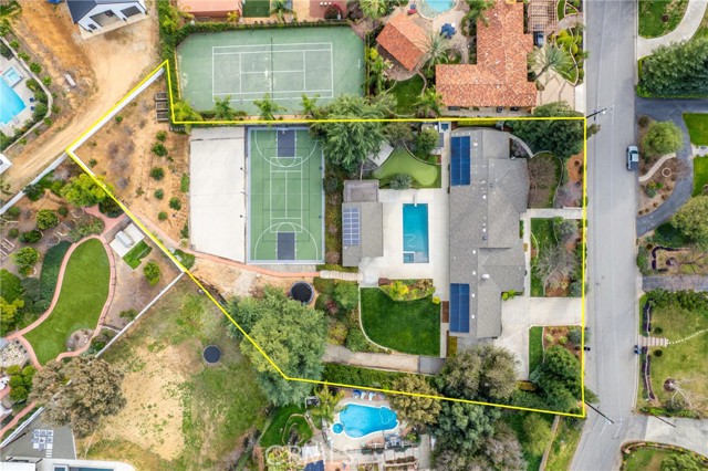It’s not just a house, it’s an all-inclusive resort. The 1+ acre lot is fully landscaped and loaded with luxurious amenities! You and your family will enjoy swimming, soaking in the jacuzzi, relaxing in the sauna, taking a brisk cold plunge, playing beach volleyball, basketball, or tennis, perfecting your game on the putting green, roasting marshmallows over the firepit, cooking in your outdoor gourmet kitchen, or simply unwinding in the poolside cabana with its fireplace and media system. This completely updated home has been meticulously designed and decorated, both inside and out. The interior and cabana were repainted in 2026. In the kitchen, discover Caesarstone quartz countertops, updated subway tile & faucet, and top-of-the-line appliances. Plenty of built-in features throughout, including a wet bar with custom cabinetry, a Sub-Zero wine fridge and beverage fridge, and a marble countertop. Your primary suite features a walk-in closet, an ensuite bath, and an adjoining office with direct patio access. With the addition of a separate exercise room, along with your resort-style backyard retreat, this estate is designed for both active lifestyles and supreme relaxation. A sprawling garden includes raised beds, three varietals of grape vines, and several fruit trees, including pear, Meyer lemon, Eureka lemon, avocado, mandarin, grapefruit, and Valencia orange. Updated WiFi Nest thermostats and security cameras. Owned solar with 50 panels. Electric car chargers in your garage. Additional space for RV parking. Schedule your private showing!
