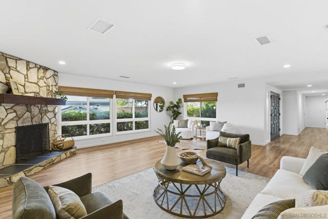 Perched high in the coveted Windsor Hills enclave of Eastridge, this single-story residence offers a rare combination of space, privacy and sweeping city-to-ocean views. Set on an expansive 0.28-acre lot in one of La Mesa’s most admired hillside neighborhoods, the home enjoys an elevated vantage point that captures glowing sunsets, city lights and glimpses of the Pacific from the backyard sitting areas. Designed for effortless living, the home features a bright and comfortable floor plan with generous living spaces and an easy indoor-outdoor connection. Large, west facing windows in the living room invite in natural light while framing the surrounding views for the most serene atmosphere. The private backyard wraps the home in greenery and openness, offering multiple areas to relax, entertain or simply take in the scenery. Recent improvements include a newer HVAC system, updated main sewer line, and dishwasher, adding comfort and peace of mind while leaving room to personalize or expand over time. The oversized lot provides flexibility, ideal for gardens, outdoor entertaining or future enhancements. Just minutes from the Village of La Mesa, scenic walking routes, and the beloved Secret Stairs, with convenient freeway access for an easy commute throughout San Diego. Proximity to local schools, including Helix High School, adds to the home’s long-term appeal. A true single-level view property in an exceptional neighborhood, offering lifestyle, location and opportunity in one of La Mesa’s most sought-after hillside settings.